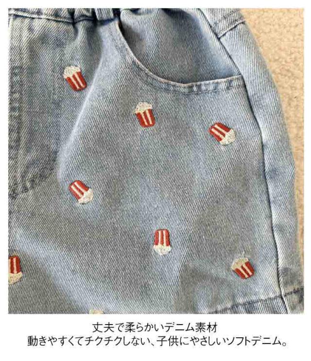 | 2025年トレンド!ポップで可愛い刺繍入りデニム カジュアルでおしゃれなデニムショートパンツに、ポップコーン刺繍をあしらった遊び心たっぷりの新作が登場♪ 夏のお出かけや公園遊びにぴったりの、注目度アップアイテムです。 丈夫で柔らかいデニム素材 動きやすくてチクチクしない、子供にやさしいソフトデニム。 長時間履いても快適な着心地で、元気に遊ぶお子様にも安心! ゆったりシルエット+ウエストゴム仕様 履きやすく、着脱も簡単♪ トップスを選ばずコーデも自在。 男女兼用 幅広いサイズ展開 80cm−150cmまで対応、兄弟姉妹でおそろいも楽しめます♪ | |