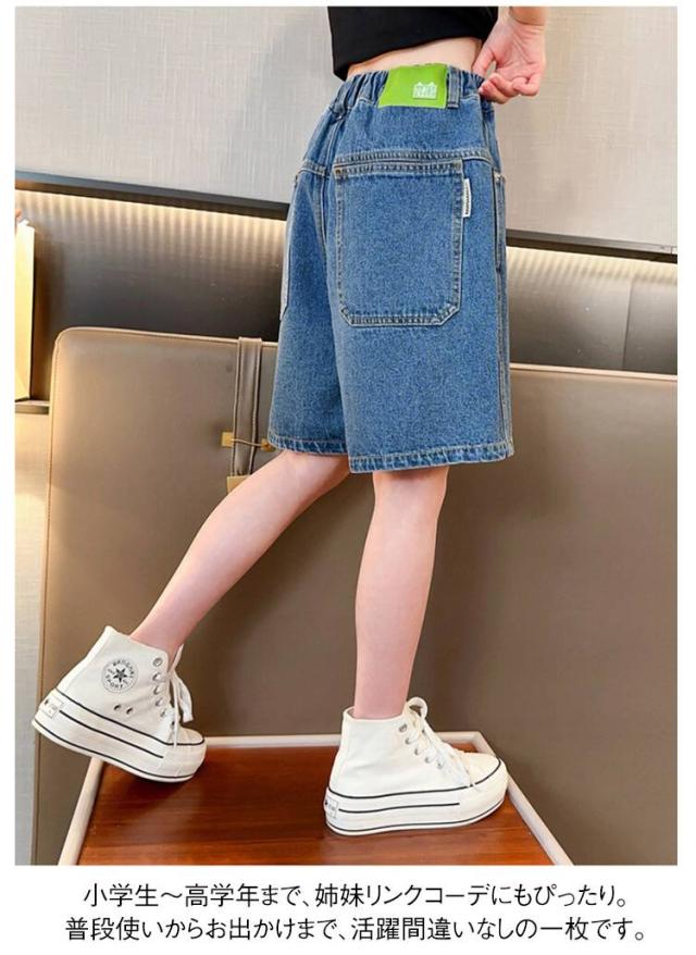 キッズ デニムパンツ 薄手 ガウチョパンツ 女の子 ショートパンツ ジーンズ 女の子 ゆったり 子供服 120cm 夏用 おしゃれ ボトムス 130cm 140cm 150cm 160cm 170cm