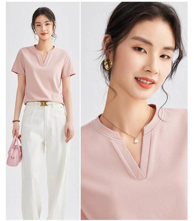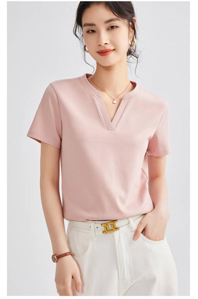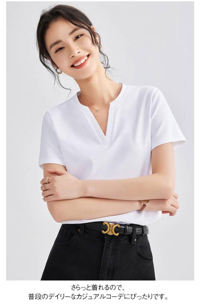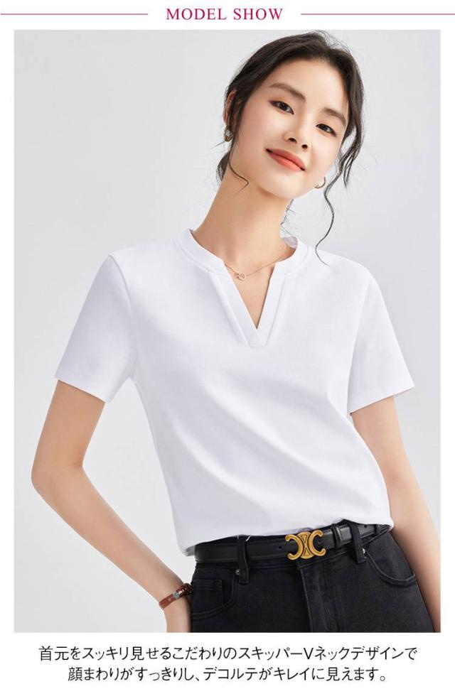 レディース トップス 半袖tシャツ 春夏 tシャツ スエット 半袖tシャツ ゆったり キーネック キーネックカットソー ルームウエア Vネック プルオーバー ストレッチ 無地 ティーシャツ 首元広め 華奢見え ブラック ホワイト ピンク
