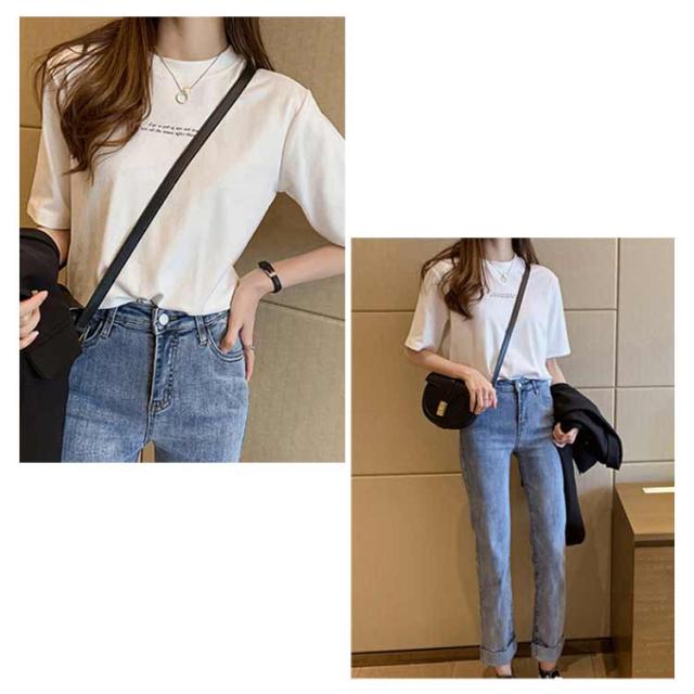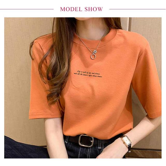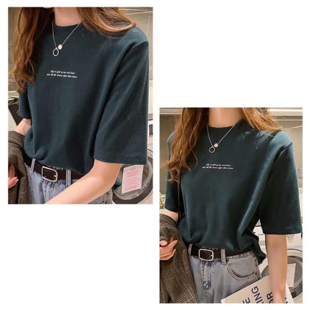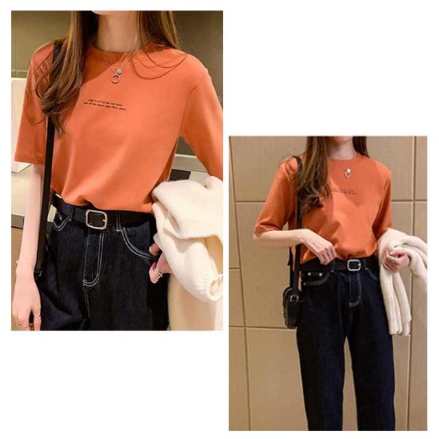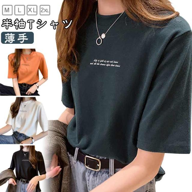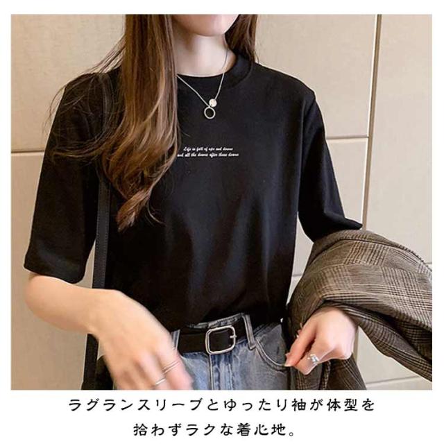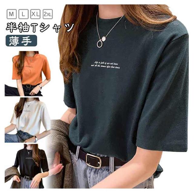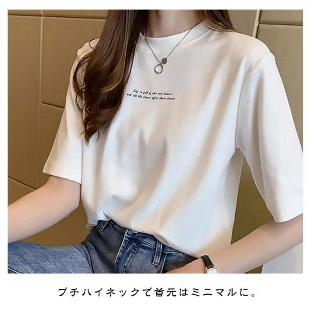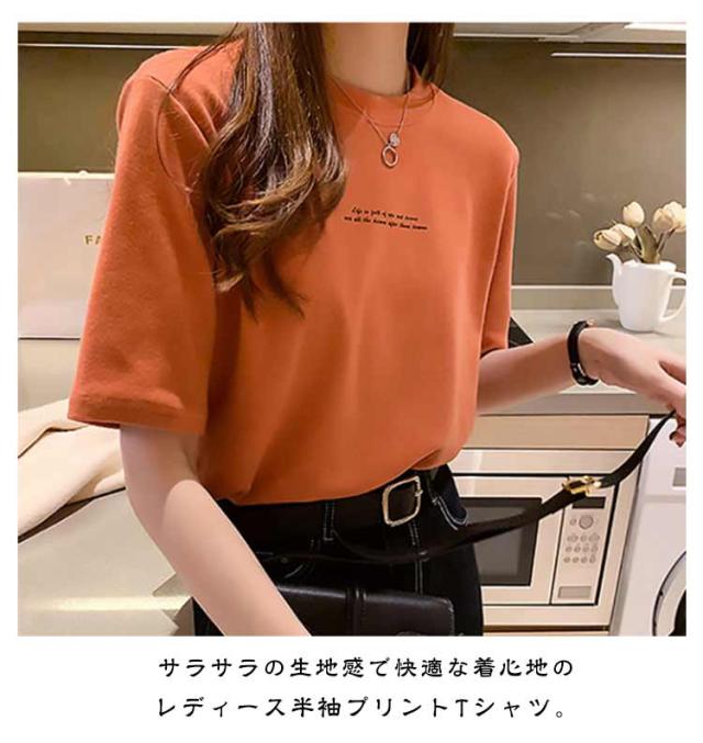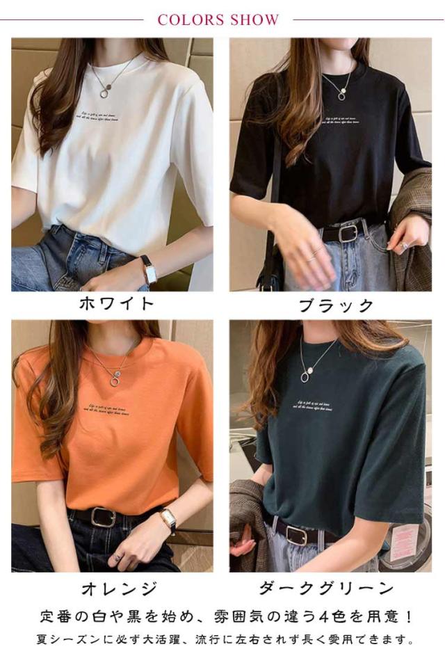 レディース カットソー 半袖 半袖Tシャツ プリントTシャツ Tシャツ プリントTシャツ プチハイネック インナー Tシャツ 夏Tシャツ 英字プリント シンプル カジュアル プルオーバー トップス 薄手 おしゃれ 春 夏 ブラック ホワイト オレンジ