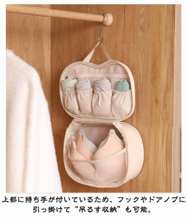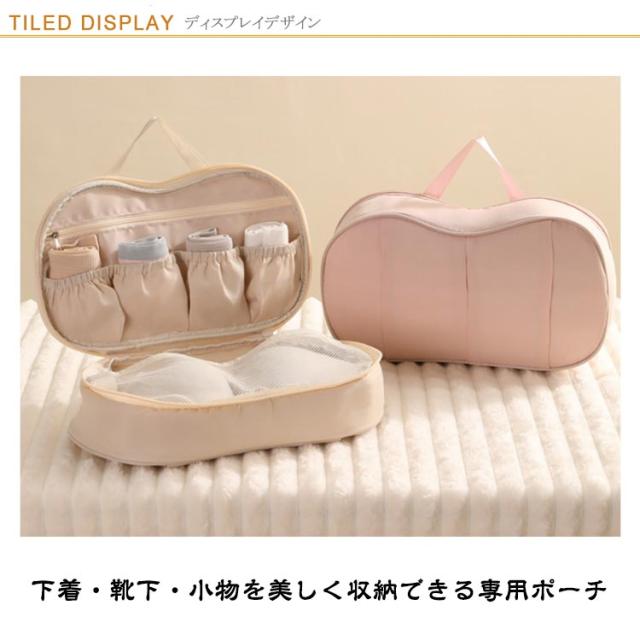 | コンパクトで大容量!旅先でも大活躍 下着・靴下・小物を美しく収納できる専用ポーチ 旅行や出張の荷造りに最適なランジェリー専用ポーチ。 ブラジャー、ショーツ、ソックスなどをすっきり整理整頓。型崩れを防ぎながら収納可能 立体構造で型崩れをしっかり防止◎ 丸みのある立体フォルムがブラジャーを優しく包み込み、旅行中の圧迫や潰れからしっかりガード。 小ぶりな見た目なのに収納力抜群。仕切り付きなので、用途別にアイテムを整理しやすい。 上部に持ち手が付いているため、フックやドアノブに引っ掛けて“吊るす収納”も可能。 | |