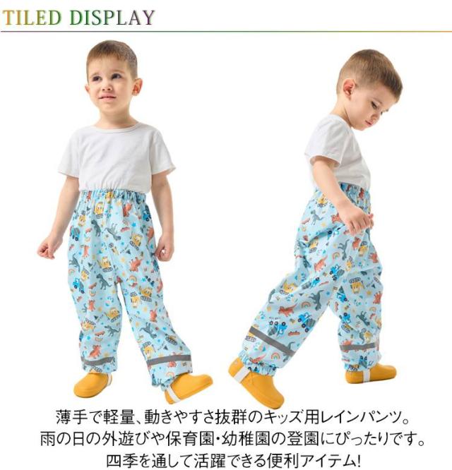 | 通園・お散歩も雨を気にせずOK! 薄手で軽量、動きやすさ抜群のキッズ用レインパンツ。雨の日の外遊びや保育園・幼稚園の登園にぴったりです。四季を通して活躍できる便利アイテム! | |