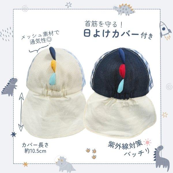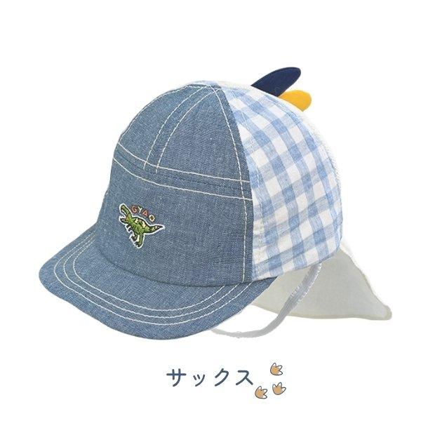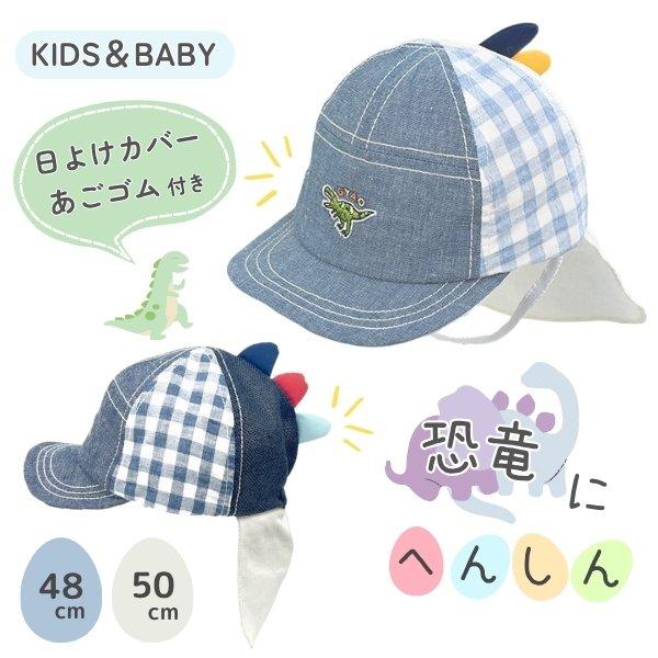 HB 日よけカバー付き 恐竜キャップ ベビー キッズ 48〜50cm 日よけカバー ネックカバー メッシュキャップ ベースボールキャップ メッシュ 手洗い あご紐付き つの付き 子供 赤ちゃん 男の子 紫外線対策 日よけ 春 夏 秋 オールシーズン 帽子 25121C