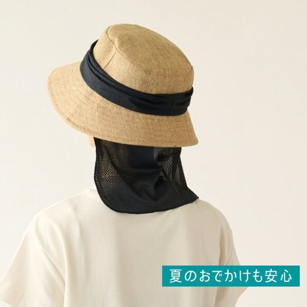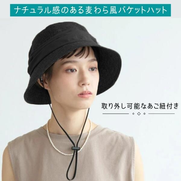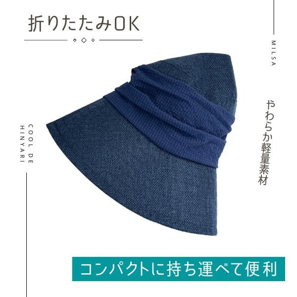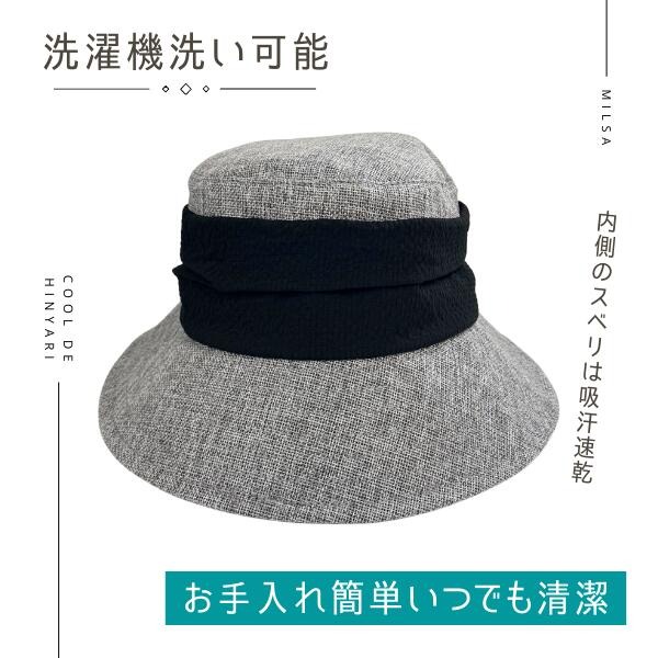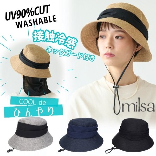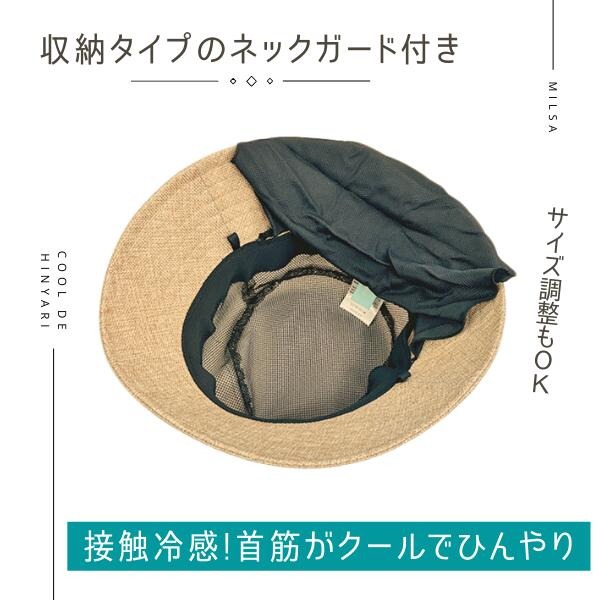 milsa 接触冷感 日よけカバー付き バケットハット UVカット UV加工 洗濯機対応 2WAY あご紐付き ひんやり 冷たい 折りたたみ ストローハット 麦わら帽子 紫外線対策 日よけ サイズ調整 レディース 女性 婦人 母の日 春 夏 ミルサ 帽子 252-061203