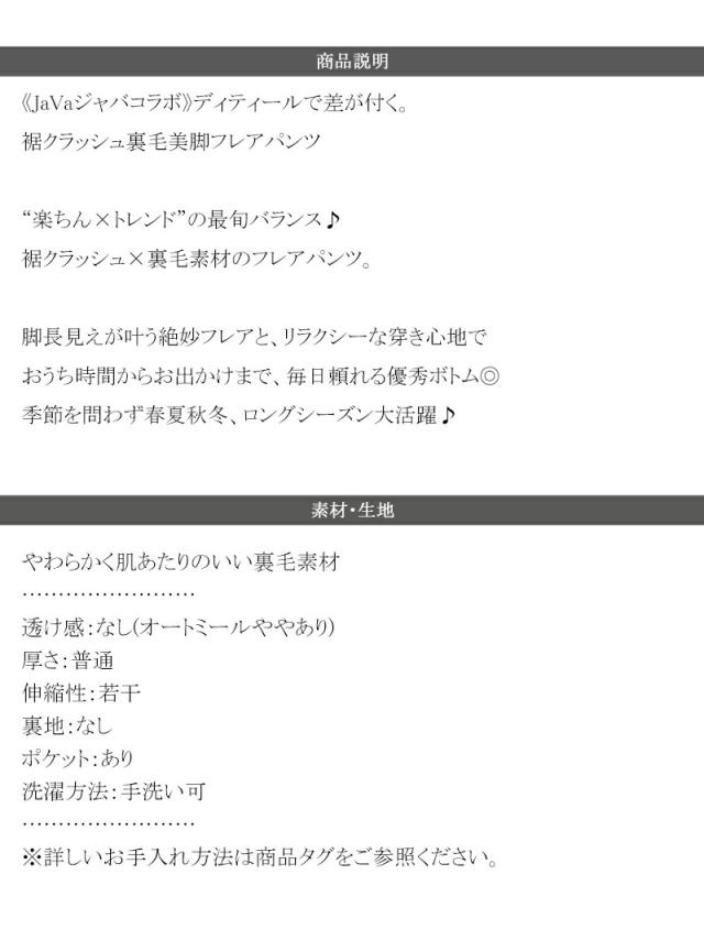 クラシカルエルフ秋新作 javaジャバコラボ ボトムス パンツ レディース 裾 クラッシュ 裏毛 フレアパンツ 美脚魅せ 大きいサイズ 2025ss jv1260452