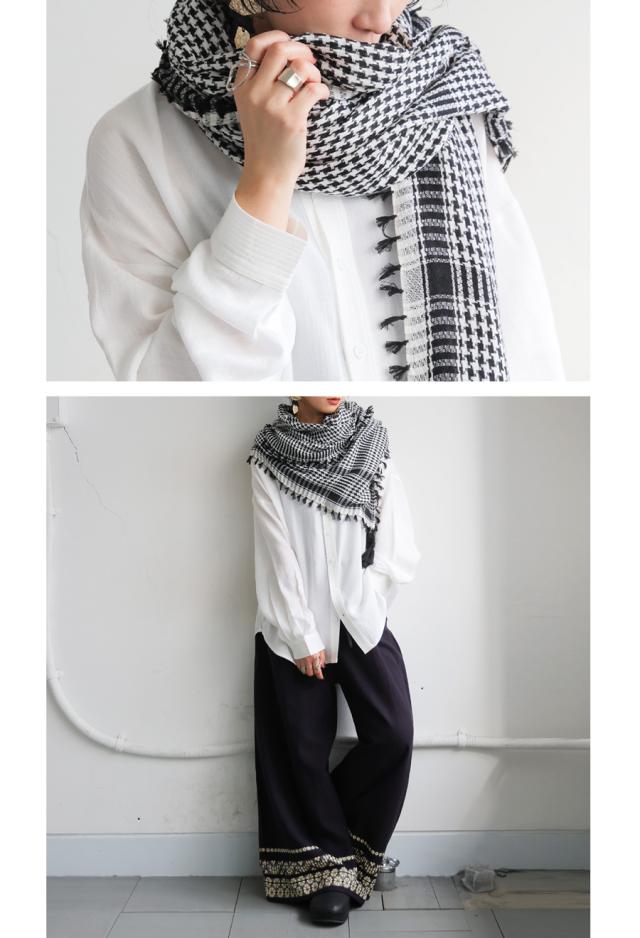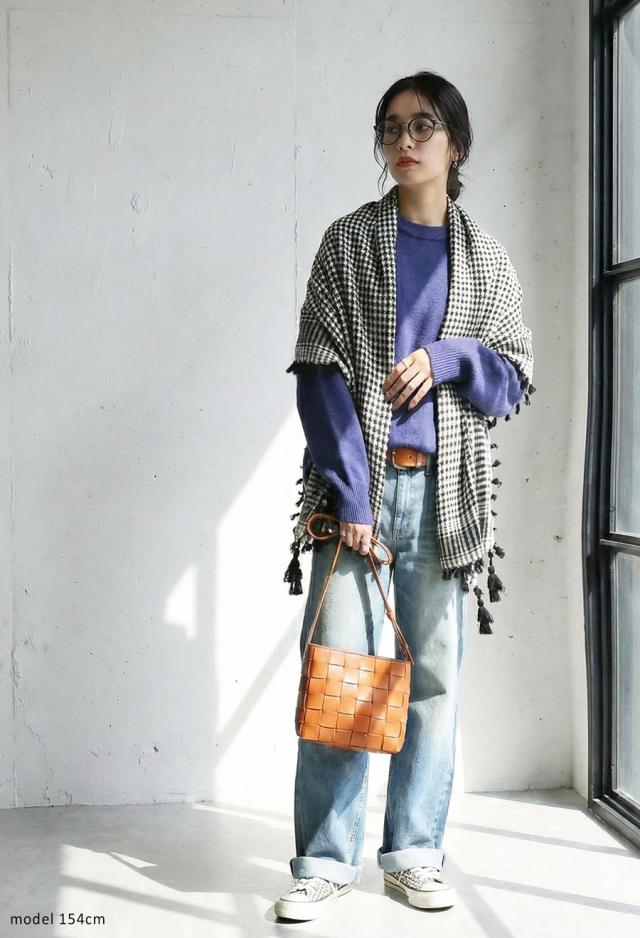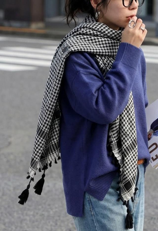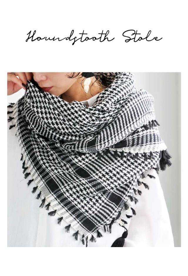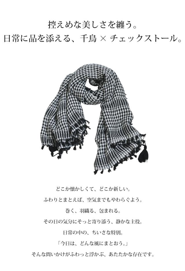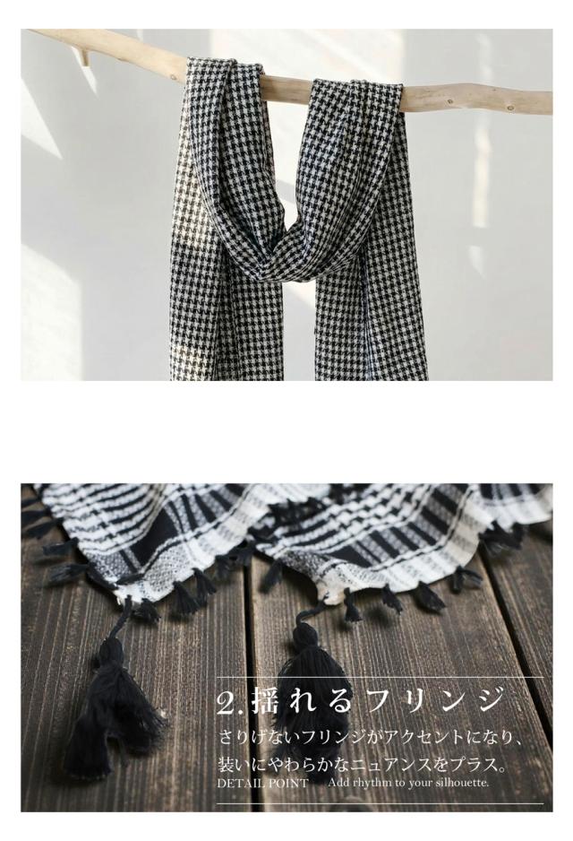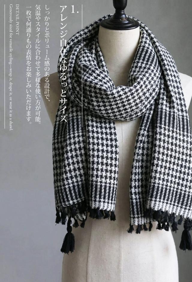 iya-00128 大判ストール チェック 千鳥柄 小物 巻き物 フリンジ マフラー スカーフ 羽織り アレンジ 防寒 きれいめ カジュアル 上品 ベーシック モノトーン お出かけ デイリー 旅行