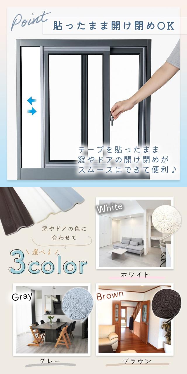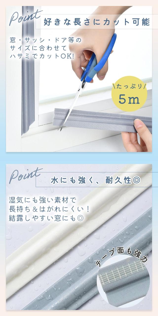 【mitas公式】 隙間テープ 5m 窓 キッチン 全3色 窓 サッシ 隙間 風 対策 寒さ対策 すきま風 防止 テープ ドア すき間 すきま風ストッパー すきま風防止 遮音 防音 シール 省エネ 隙間風 隙間風対策 ホワイト グレー ブラウン すきまパッキン 戸当たりテープ 隙間ドアテープ
