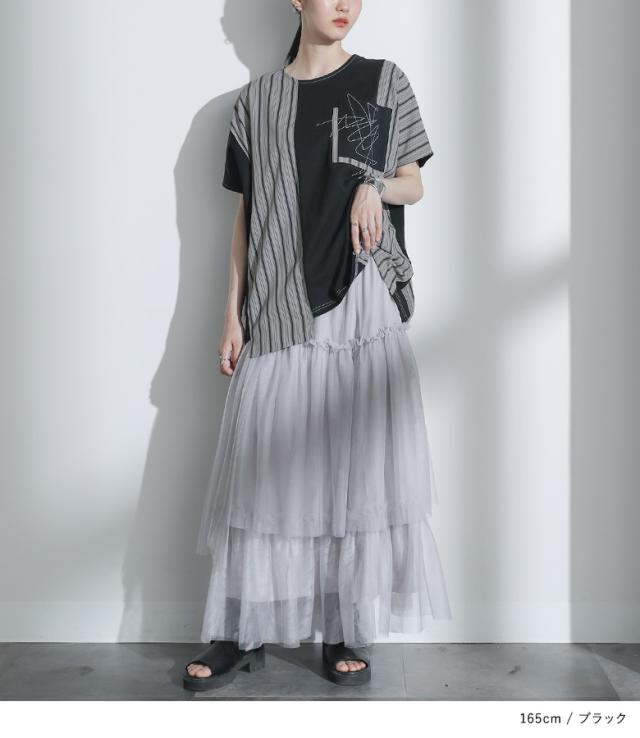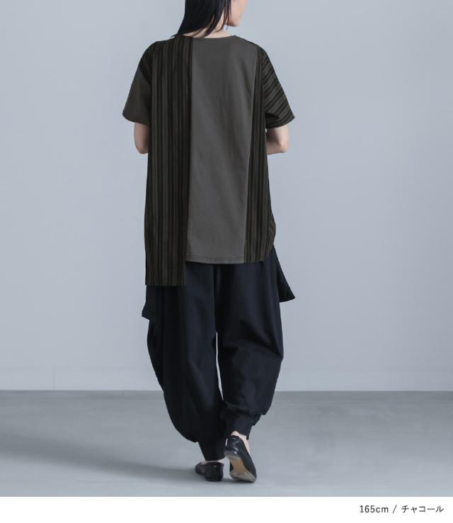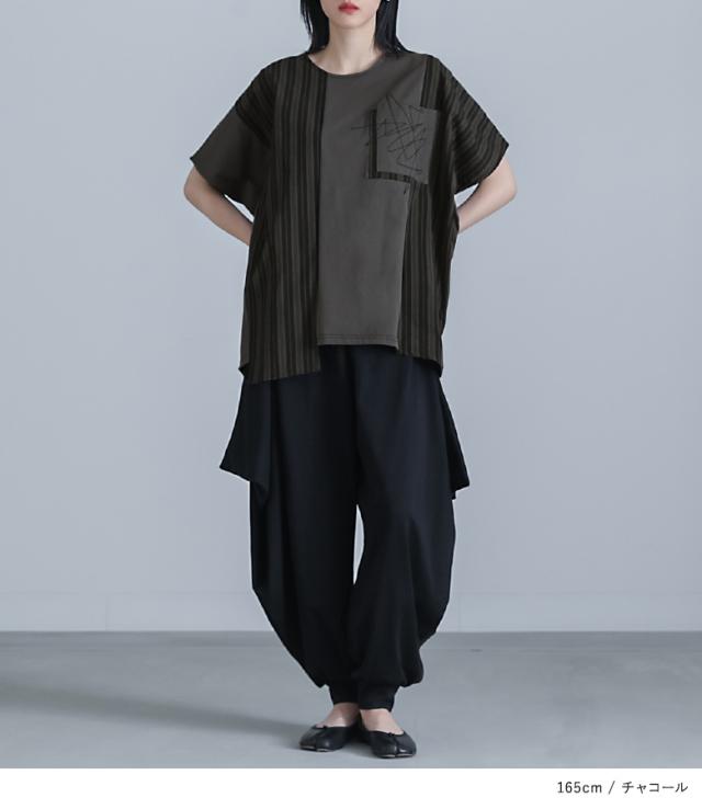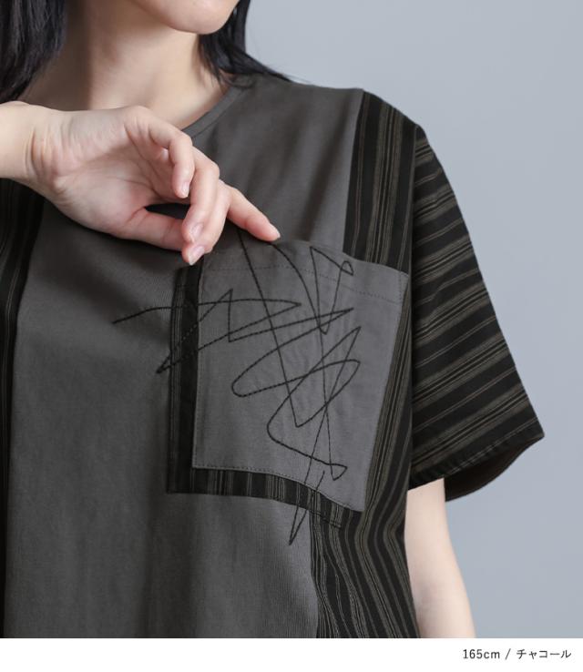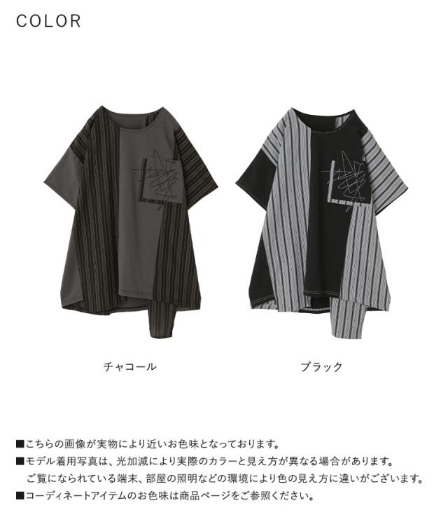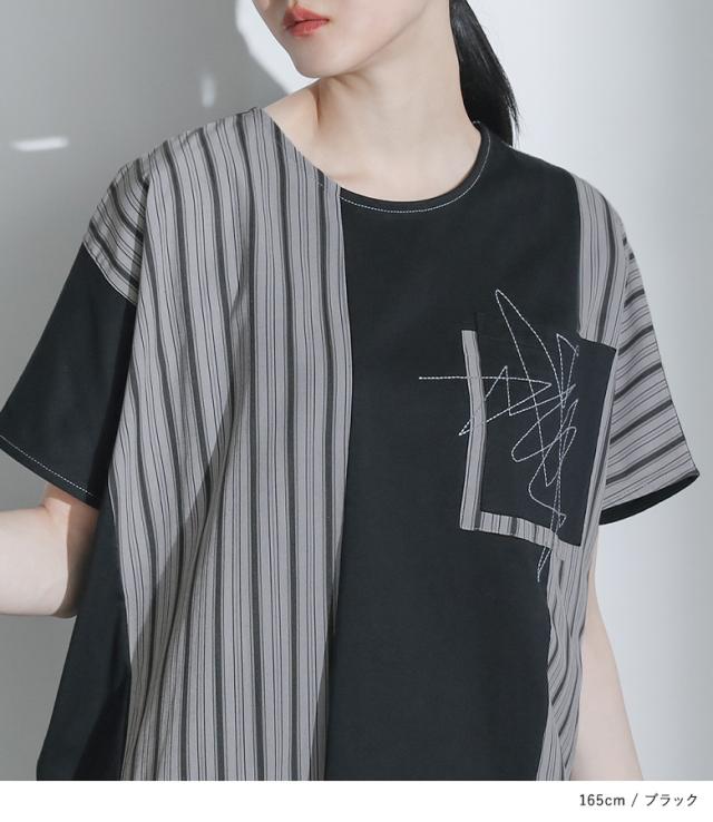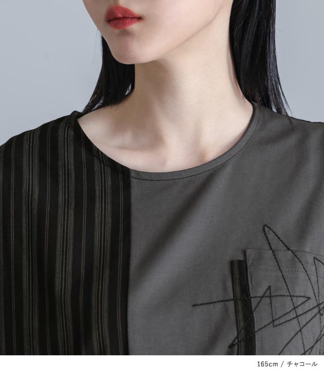 カットソー 半袖 レディース トップス Tシャツ ドルマンスリーブ ストライプ柄 刺繍 アシンメトリー カジュアル モード 春 夏 【TP】 プルオーバー クルーネック 切り替え アシメ マルチストライプ 配色 綿100% コットン100% 異素材MIX ドッキング ポケット 見せかけポケット 着回し おうちで洗える キレカジ 可愛い系 大人女子 大人可愛い お洒落可愛い 大人カジュアル 上品 きれいめ ラフ かっこいい 体型カバー 二の腕カバー Sサイズ Mサイズ Lサイズ LLサイズ 3Lサイズ XLサイズ フリーサイズ ぽっちゃり 大きいサイズ プラスサイズ 10代 20代 30代 40代 50代 60代 オフィス 通学 お買い物 お出掛け 旅行 リゾート おしゃれ お洒落 トレンド 流行 ママ 母 母親 kOhAKU コハク スタイリッシュ 洗練 エッジィ osharewalker オシャレウォーカー おしゃれうぉーかー グレー 灰色 チャコールグレー チャコール ブラック 黒[ID]12to04i