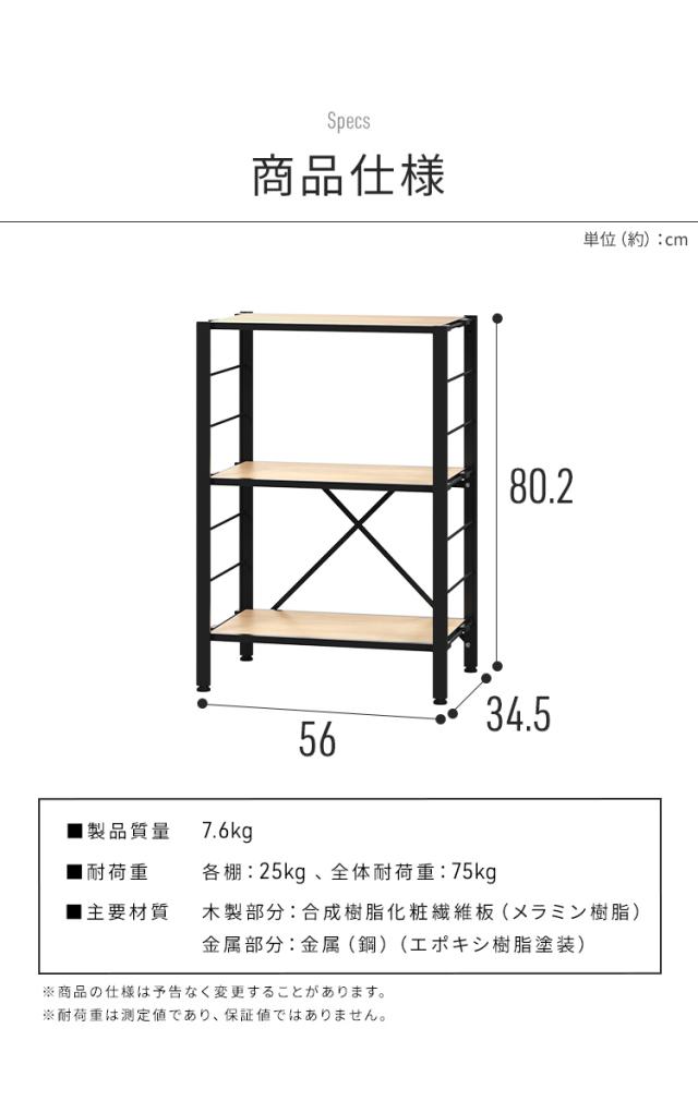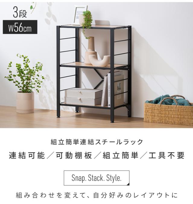 (検索用:スチールラック 3段 幅約56cm 奥行約34.5cm 高さ約80cm 組立簡単 工具不要 連結 可動棚 おしゃれ シンプル キッチン リビング オフィス ランドリー 本棚 オープンラック ディスプレイラック スチール棚 シェルフ 収納 4967576790123 4967576790130 4967576790147)
