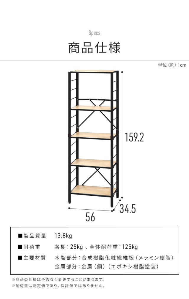 (検索用:スチールラック 5段 幅約56cm 奥行約34.5cm 高さ約159cm 組立簡単 連結 可動棚 おしゃれ シンプル キッチン 電子レンジ リビング オフィス ランドリー オープンラック ディスプレイラック スチール棚 シェルフ 収納 4967576790154 4967576790161 4967576790178)