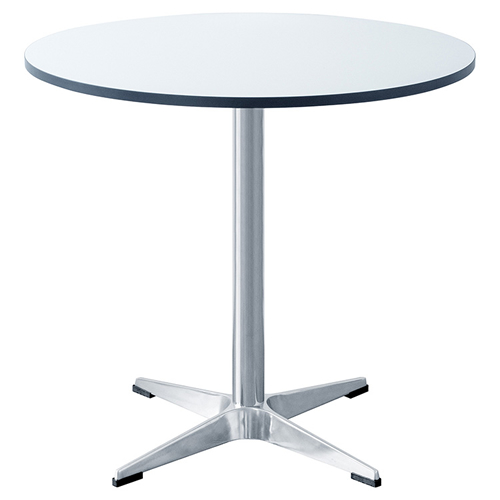 側面カラーがアクセントになるラウンド天板と、光沢の美しいシルバー脚がお部屋に映えるカフェテーブル『Caredo(カレド)』。