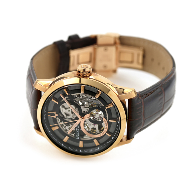 【ショッパー付】 ブローバ クラシック 自動巻き 腕時計 ブランド メンズ オープンハート BULOVA 97A169 アナログ ブラック ブラウン 黒 おしゃれ 防水 プレゼント 男性 実用的