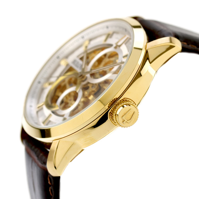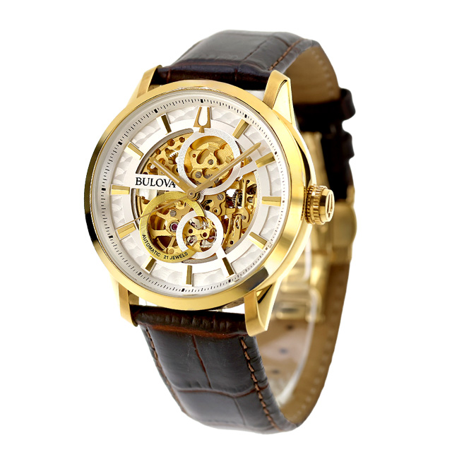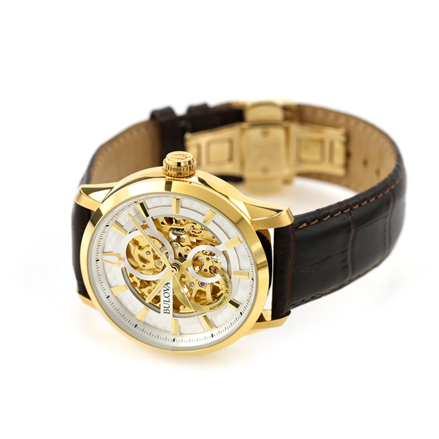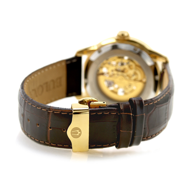 【ショッパー付】 ブローバ クラシック 自動巻き 腕時計 ブランド メンズ オープンハート BULOVA 97A138 アナログ シルバー ゴールド ブラウン おしゃれ 防水 プレゼント 男性 実用的