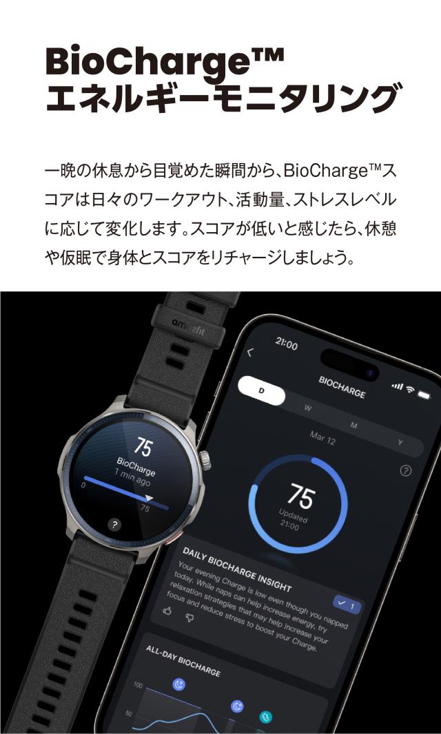 ・毎日のワークアウト、Activity、ストレスレベルに基づくBioCharge?スコア