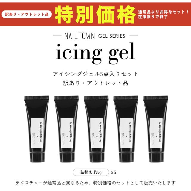 【アウトレット品】NAILTOWN GEL アイシングジェル 詰め替えタイプ 5点入りセット 約8g入り