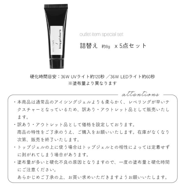 ・本商品は通常品のアイシングジェルよりも柔らかく、レベリングが早いテクスチャーとなっているため、