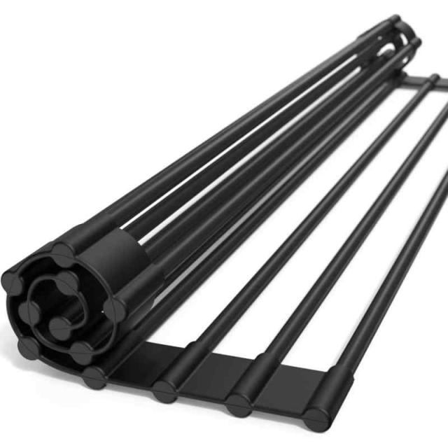 【基本仕様】折り畳み式の水切りラックです。小さく丸めてたためる設計でサイズをご自宅のシンクの大きさに合わせられるので、キッチン周りのスペースを有効活用できます。耐荷重15kg, 耐熱250度の特別仕様のため、2人分の皿・カトラリーなど大容量のものを置いても安定・安心です。さらに棒と棒の間を切ることができるので、お好きな幅に調節できます。シンクの内径が〜38cmまで対応可能サイズにつきまして、シリコン素材なので若干の個体差(±0.2cm)が生じます。ご了承ください。