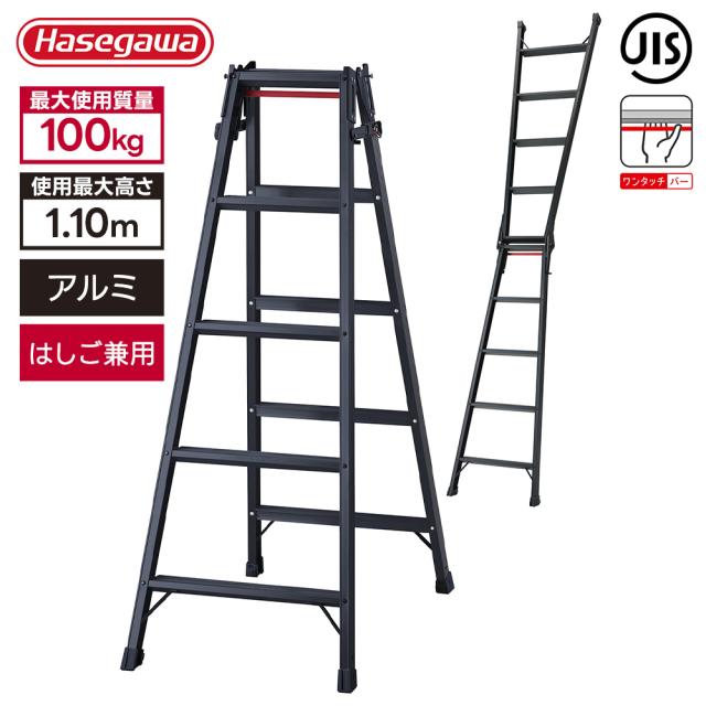 長谷川工業 はしご兼用脚立 RHB-15a BLACK 高さ140cm 耐荷重100kg 折りたたみ 幅広踏ざん アルミ ワンタッチバー 踏み台 高所作業 DIY 安定性 JIS適合品 ハセガワ