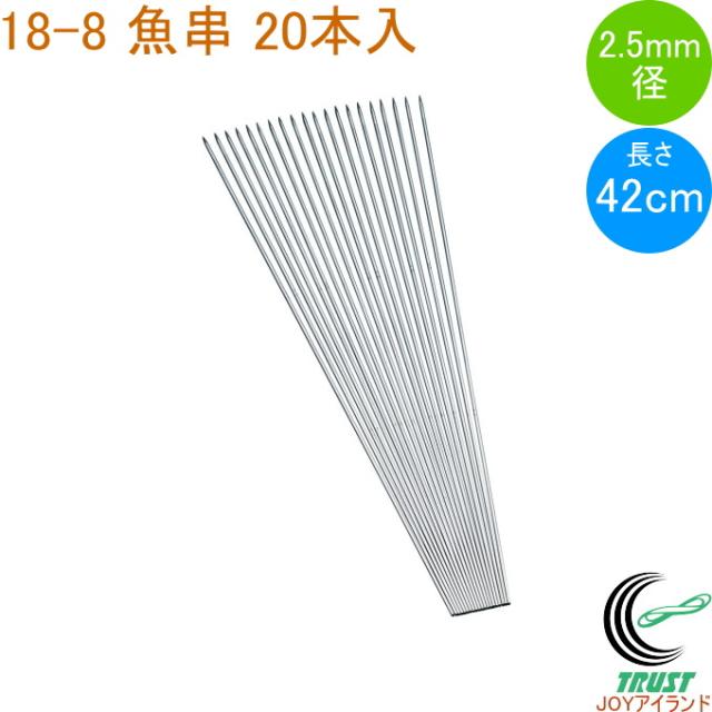 18-8 魚串 2.5mm径 42cm 20本入 日本製 18-8ステンレス 串 魚串 くし 焼き串 20本入 太さ2.0mm 焼き魚 焼き鳥 バーベキュー 串料理 シルバー 丈夫 キッチン キッチン用品 調理 調理道具 赤川器物製作所