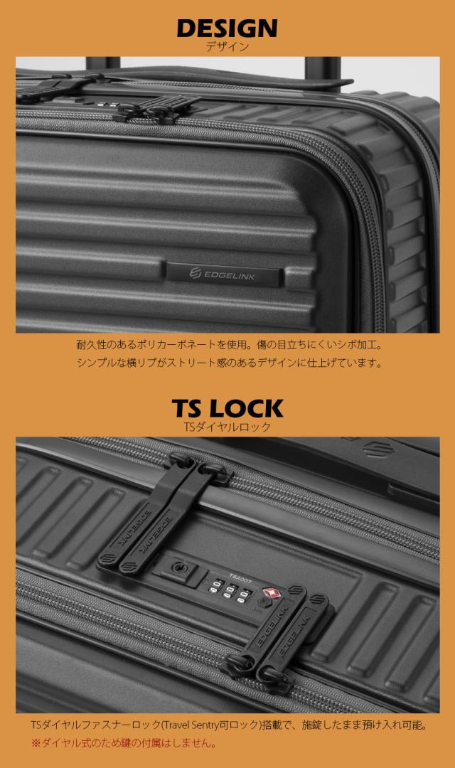 TSダイヤルファスナーロック(Travel Sentry可ロック)搭載で、施錠したまま預け入れ可能。 ※ダイヤル式のため鍵の付属はしません。