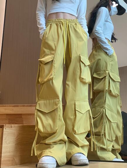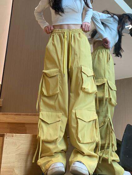 カーゴパンツズボンボトムスパンツハイウ レディースファッション 続々登場 ブラック イエロー S M L XL