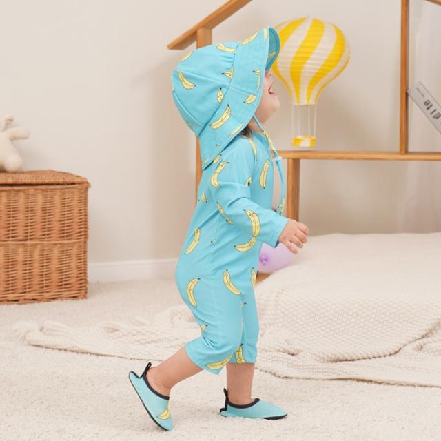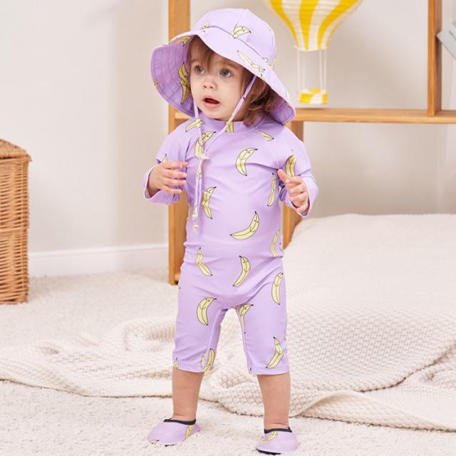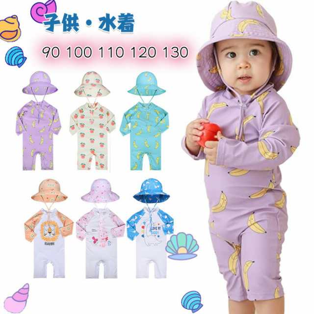 ベビー 水着 男の子 女の子 ラッシュガード ロンパース 長袖 赤ちゃん 子供 男児 UPF50+ UVカット 体型カバー 超かわいい キッズ 2点セット 帽子つき スイムウ オールインワン