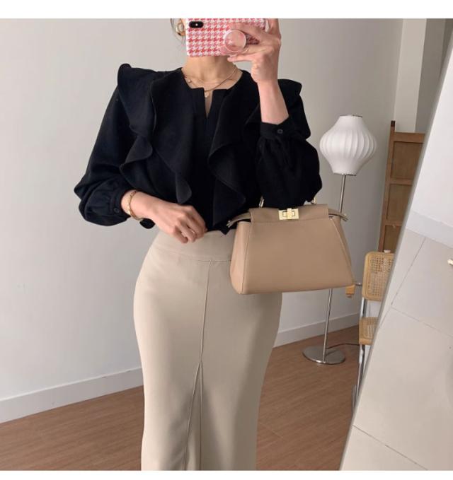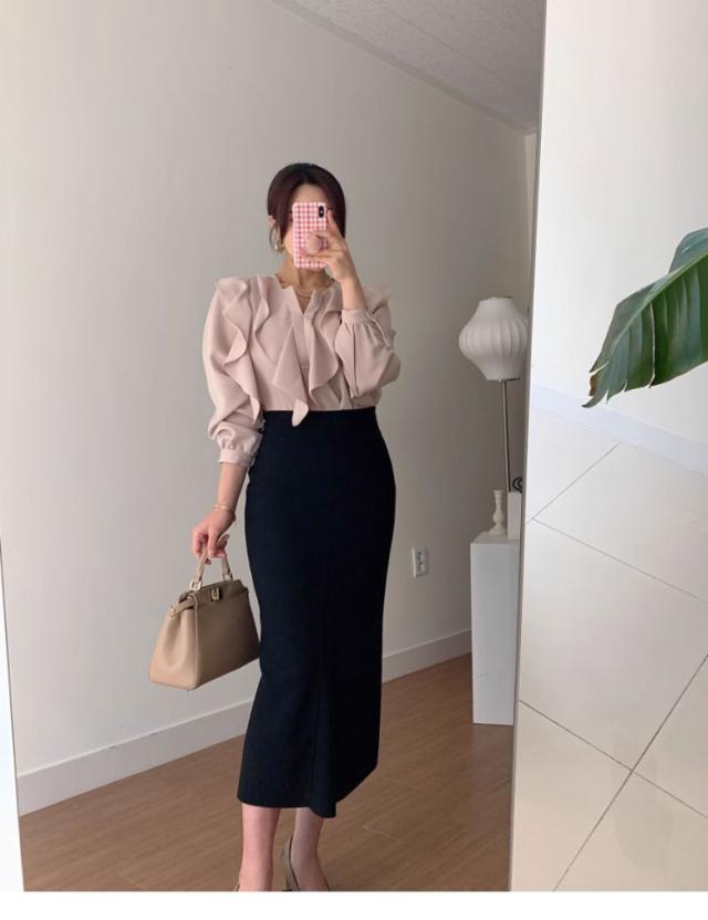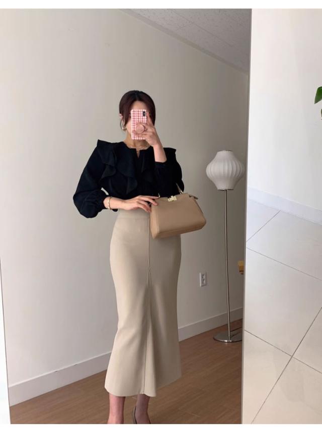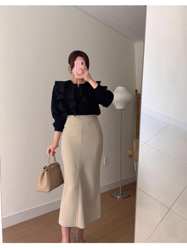キレイめデザインのロングスカート。