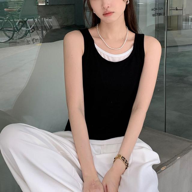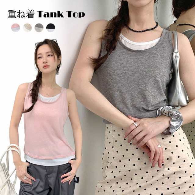 タンクトップ レディース 重ね着 ブラ紐隠し バイカラー おしゃれ 大人 20代 30代 夏服 日常着 M L 4色 ピンク ベージュ グレー ブラック