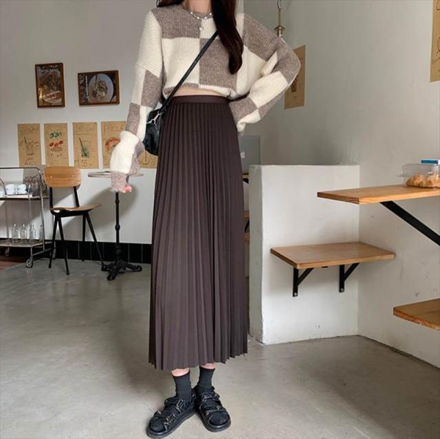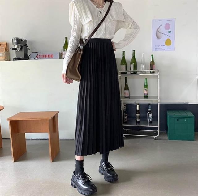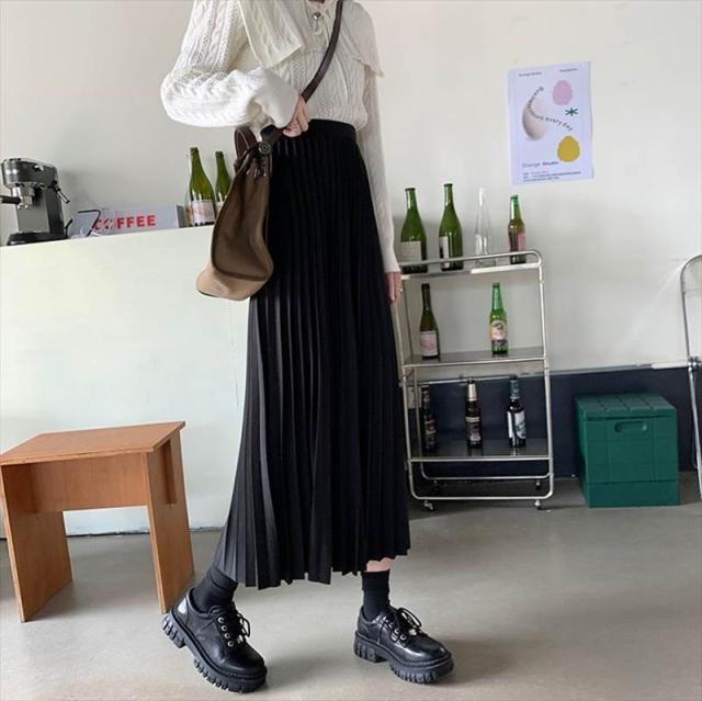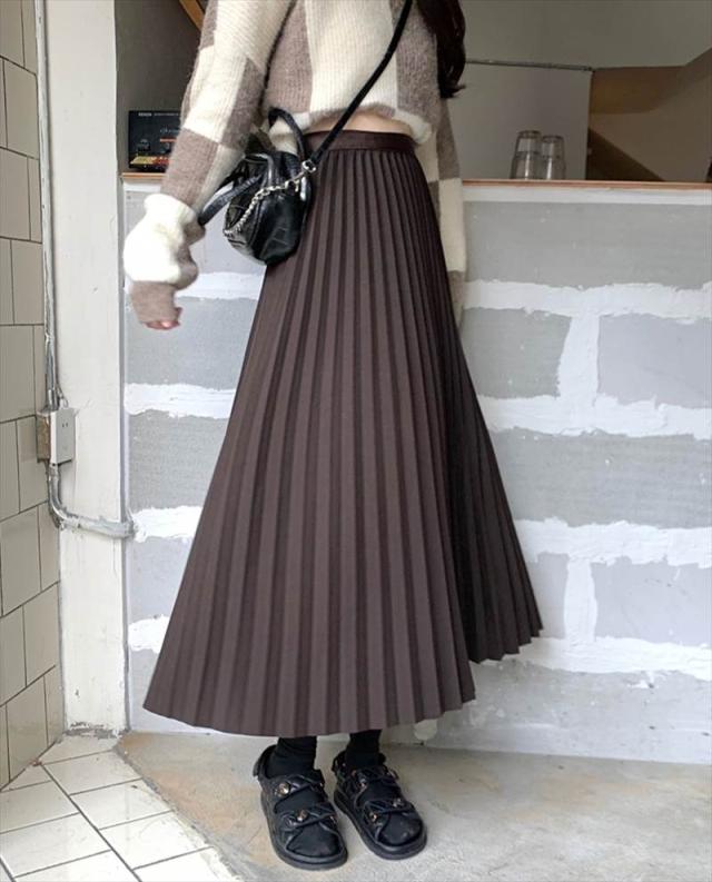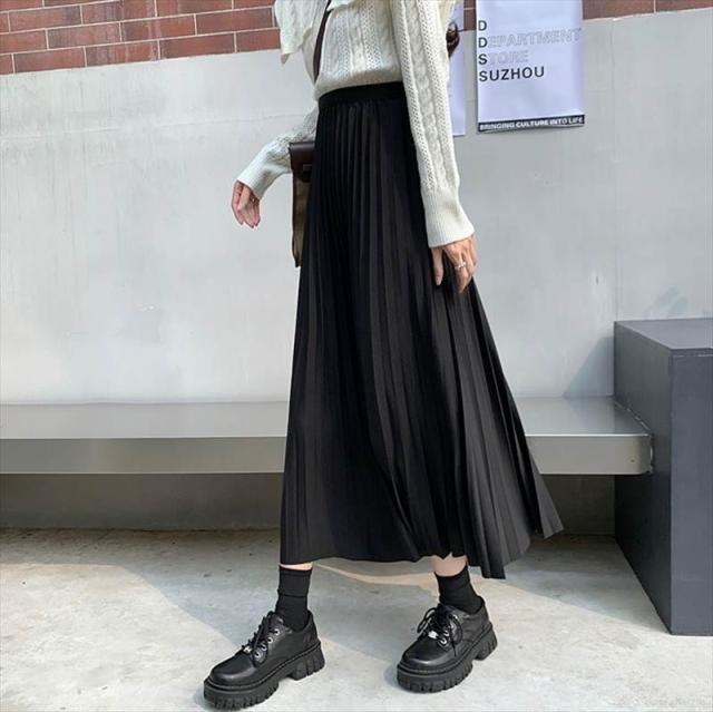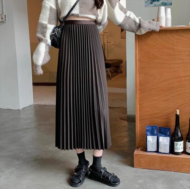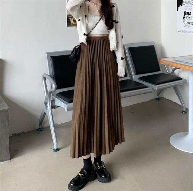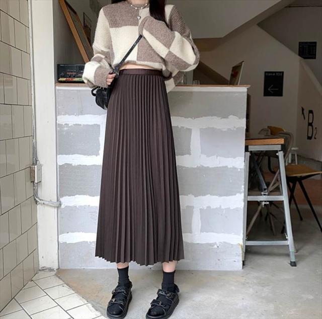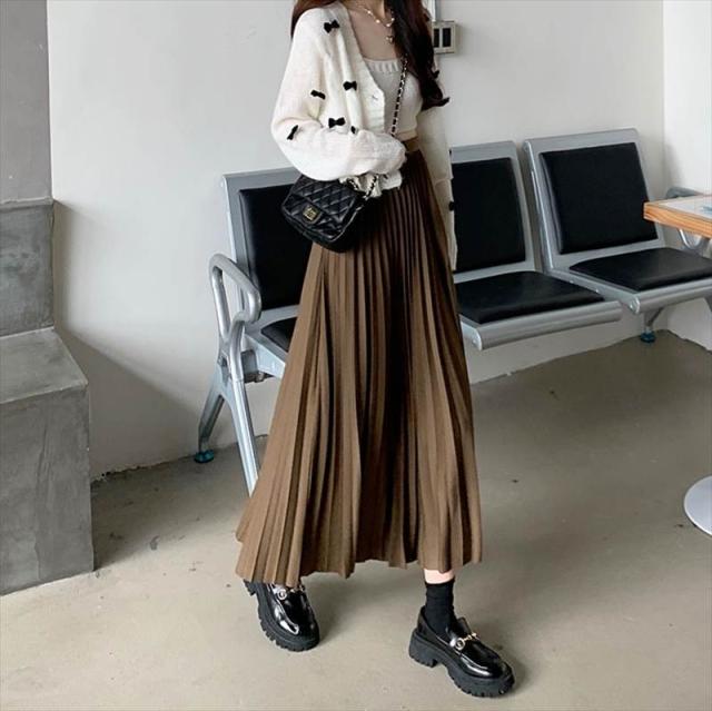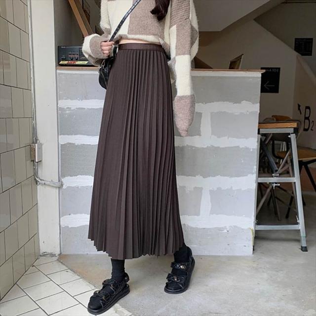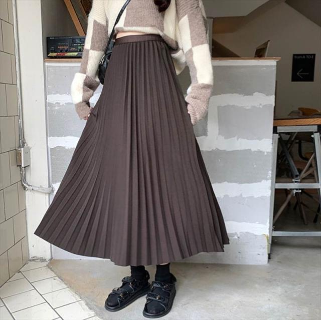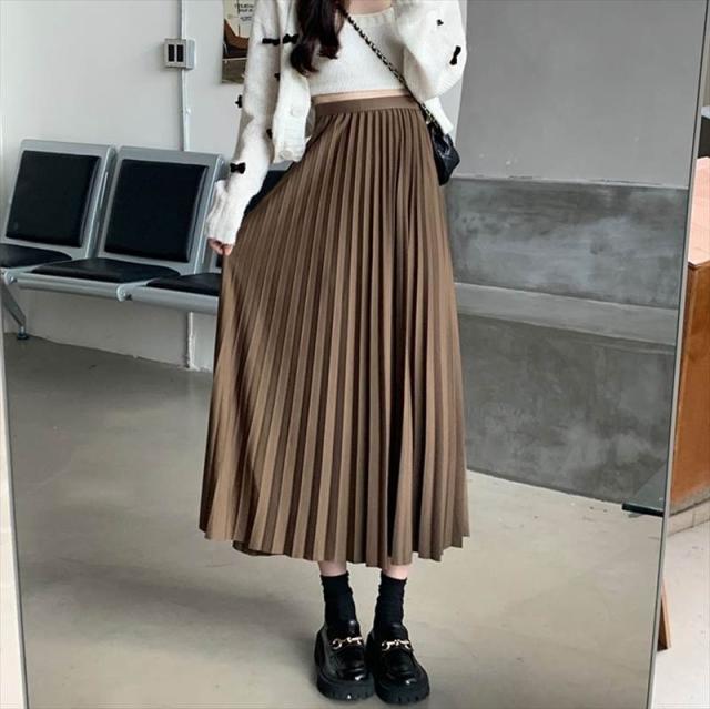 スカート ロングスカート プリーツスカ レディースファッション 特集 ブラック カーキ ブラウン XS S M L XL