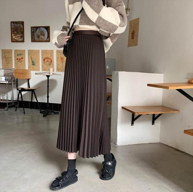 スカート ロングスカート プリーツスカート ミモレ丈 フレア ストレート Iライン プリーツ ハイウエスト 薄手 大人可愛い きれいめ シンプル カジュアル 大人 上品 お洒落 レトロ クラシック 大人女子 こなれ感 ガーリー 主役級 抜け感 無地 春 秋 冬 20代 30代 40代 ママ 通勤 学生 通学 デート お出かけ 女子会 休日 運動 旅行 着回し 普段使い 体系カバー 定番 トレンド 流行 インスタ映え XS S M L XL ブラック カーキ ブラウン