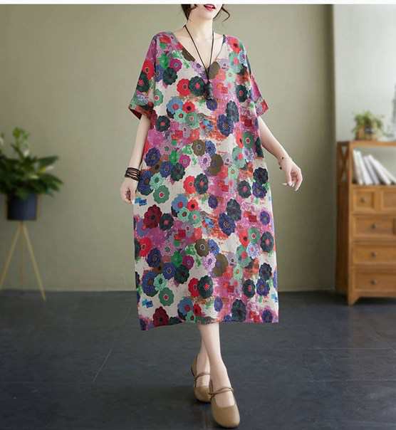 ロングワンピース ワンピ きれいめ 夏 Vネック レディース 半袖 シャツワンピース チュニック 大人可愛い オーバーサイズ ロングシャツ スカート シャツ カットソー トップス 花柄 薄手 ブラウス