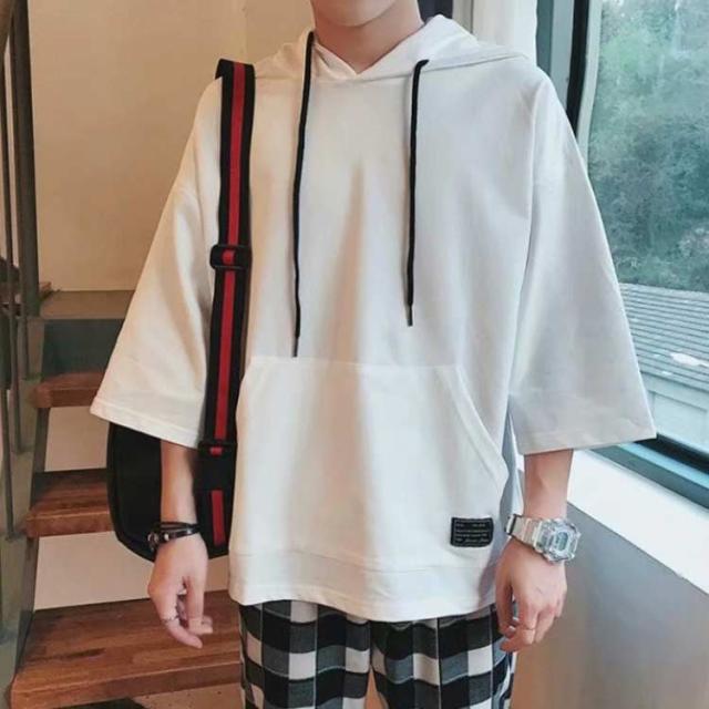 パーカー メンズ 半袖パーカー 半袖 薄手パーカー フード付きtシャツ プルオーバーパーカー 薄手 春服 夏服 冷感 トップス 大きいサイズ 無地 シンプル 夏 韓国 黒 ホワイト ブラック 白