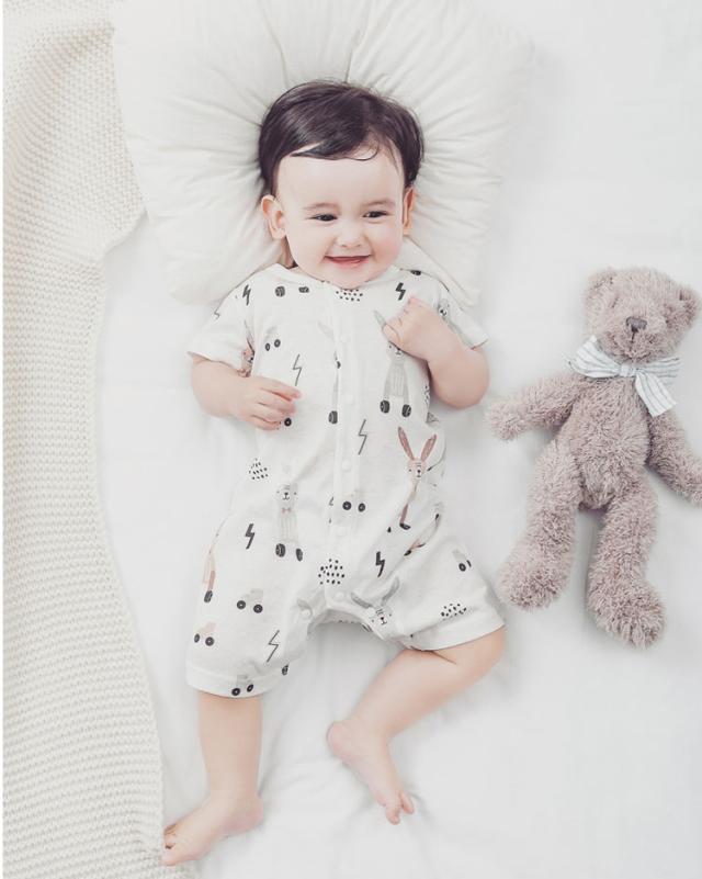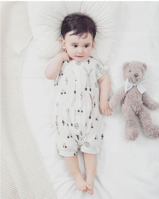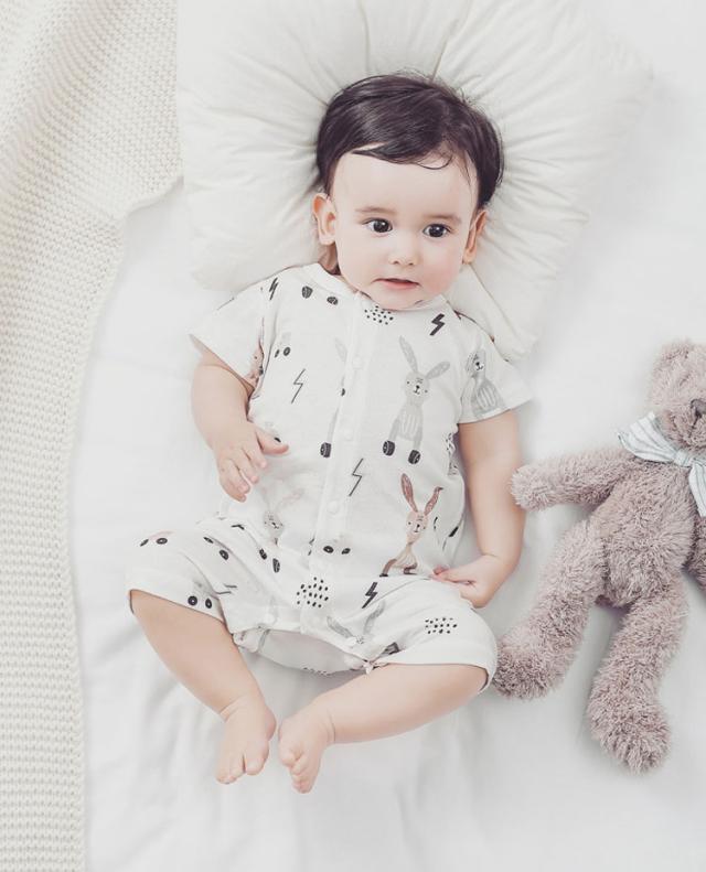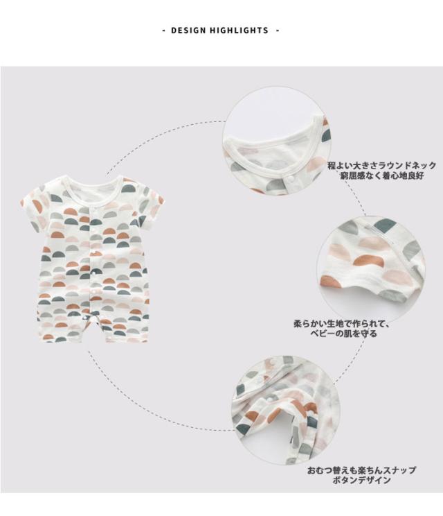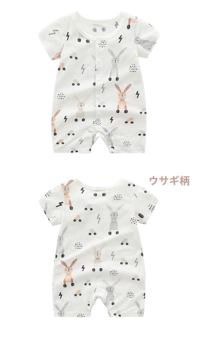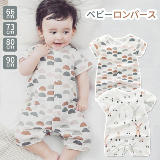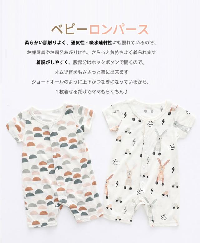 ベビーロンパース おしゃれ 女の子 男 ベビー ベビー服 ファッション カバーオール ロンパース 通販 半丸柄 ウサギ柄 66cm 73cm 80cm 90cm