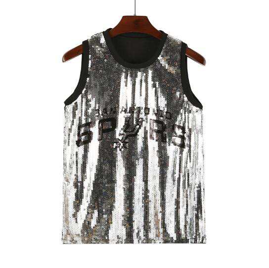 ロゴスパンコールキラキラカットソーベストトップスダンス衣装 ゆったりヒップホップHIPHOPレディースガールズストリート大人派手部活イベント文化祭ダンス衣装