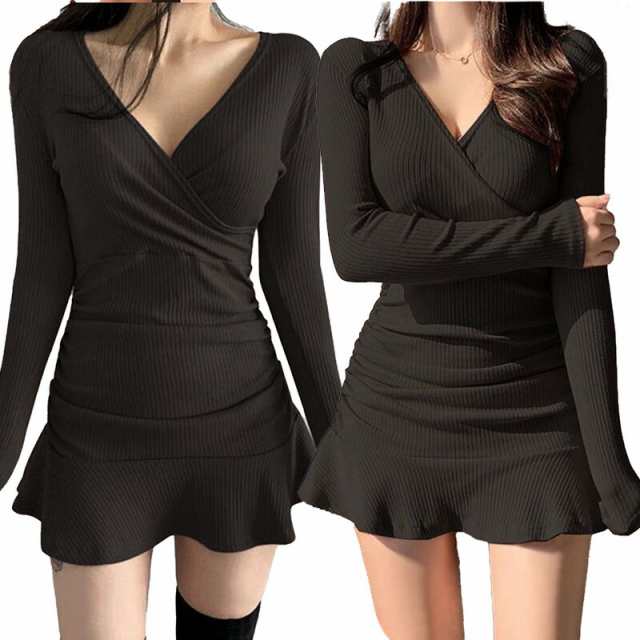 レディース リブ ワンピース キャバドレス キャバ ドレス パーティードレス ミニワンピース タイト 秋冬 春夏 キャバワンピ ミニドレス セクシー 大人可愛い 無地 フリル ボディコン ミニ