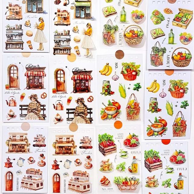 シールブック 型抜き 異素材 珈琲 コーヒー ケーキ クッキー 野菜 果物 フルーツ 食パン 食べ物 建物 建築 ショップ 車 誕生日ケーキ 人物 女の子 猫 犬 ねこ いぬ 動物 イラストシール コラージュ素材 おしゃれ ステッカーブック マステシール 耐水 PETシール DIY