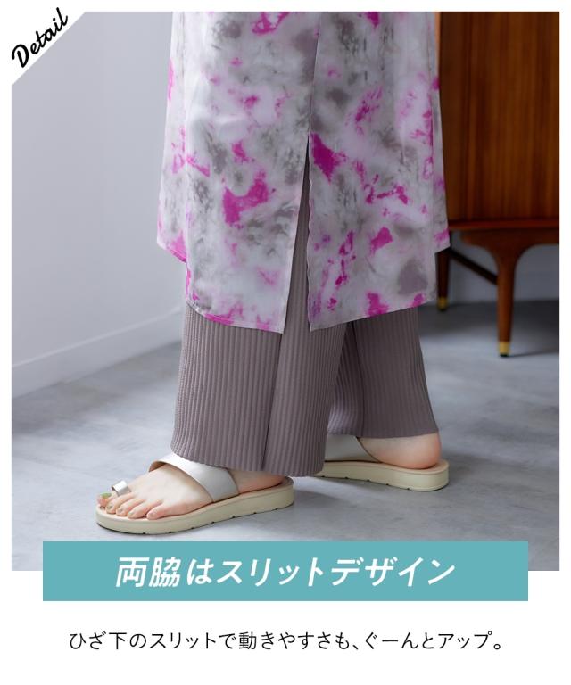 品質=ポリエステル100% 両脇スリット グラデーション染めのため、1点ずつ色の出方が異なります。この商品は透け感のある素材です。重ね着をしてお楽しみください。 透け感:あり 伸縮性:なし 生地の厚み:薄い 光沢感:ややあり 裏地:なし 季節:春・夏・秋 シルエット:普通 原産国:中国製 備考:洗濯機OK ネット使用 ※単位:cm ※仕立てサイズとは、実際に商品を測った時のサイズのことです。 ※サイズの誤差は多少発生します。