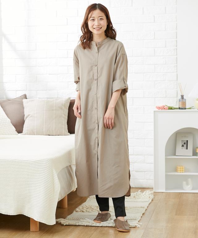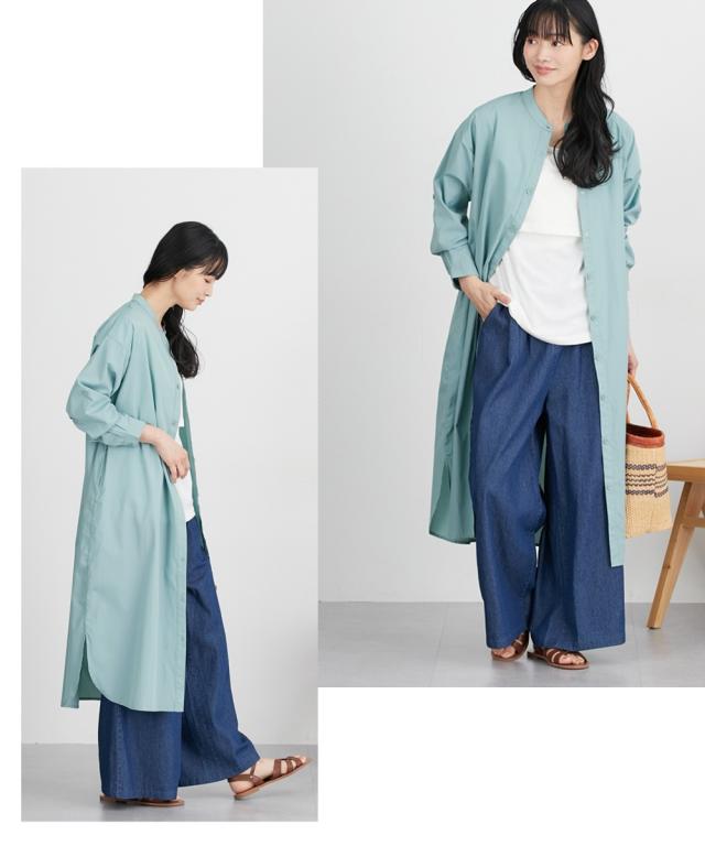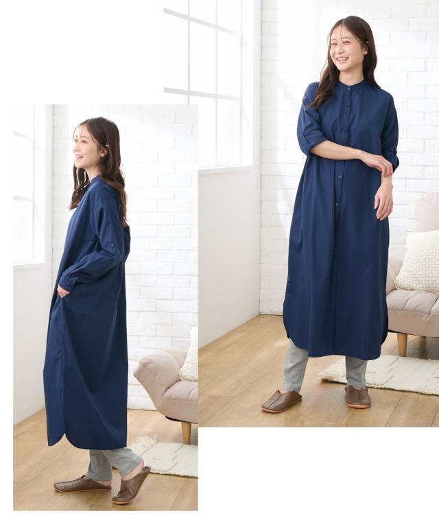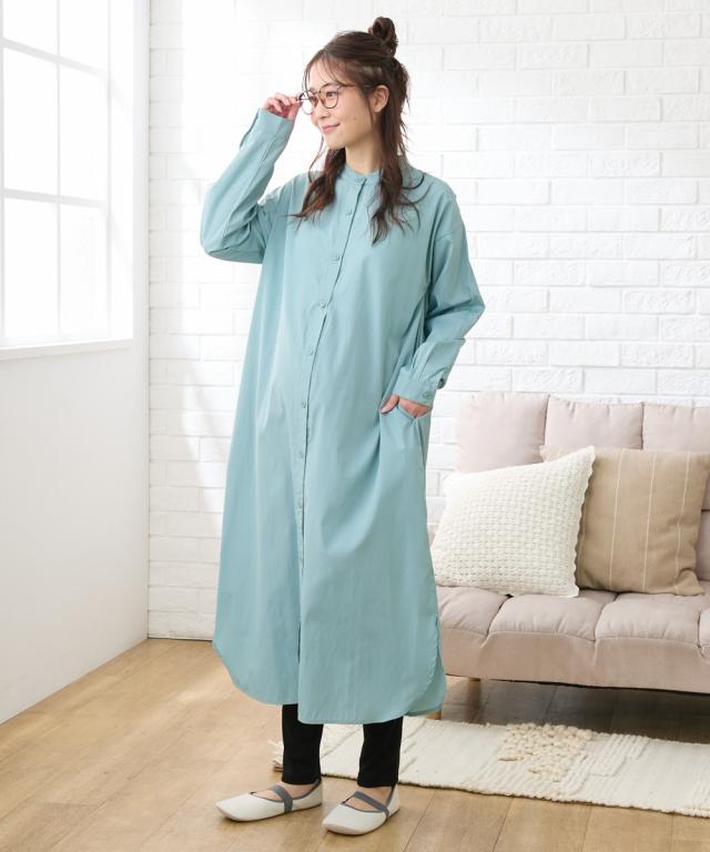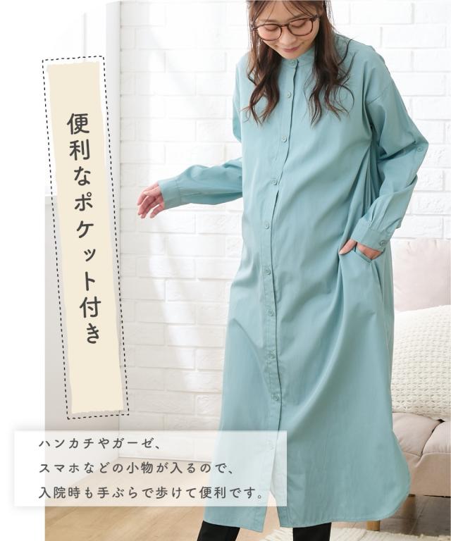 さらっとした着心地の先染め織物生地のワンピースとボトムがセットになったパジャマ ■design ・おうちの中ではもちろん、バンドカラーのシャツワンピースとしてお出かけにも使えるデザイン ・袖口にはカフスがあり、パジャマっぽくないディティール ・脇スリットとラウンドヘムのデザインで抜け感とこなれ感を演出 ・バックのヨーク切り替えとセンタータックで後ろ姿も抜かりなし! ■point ・上衣の袖はロールアップができるので、春〜秋の3シーズン275日、長〜く使える 家事や育児で袖を上げたい時にも袖が留めておけるので便利です ・前がボタンで全開するので、寝ながらの診察や入院時に重宝します ・胸の部分だけがスナップボタンになっていて、片手で簡単に外して授乳ができる それ以外のボタンは通常のボタンになっていてはだけにくい 特別な授乳口がないのでマタニティ、授乳期が終わっても使いやすい ・両脇にポケットがあり、スマホやガーゼなど、ちょっとしたものを入れられて便利です ・パンツはボタン付のゴム仕様でウエスト調節可能 調節ボタンがウエストの外側についているので、調節がしやすく、肌に直接ボタンが当たらず、ゴロゴロしにくい お腹のどんどん大きくな