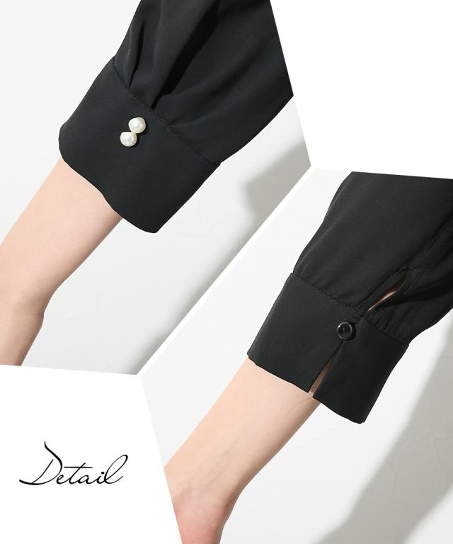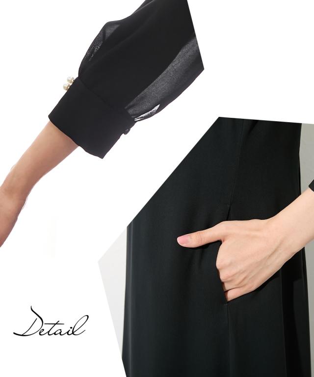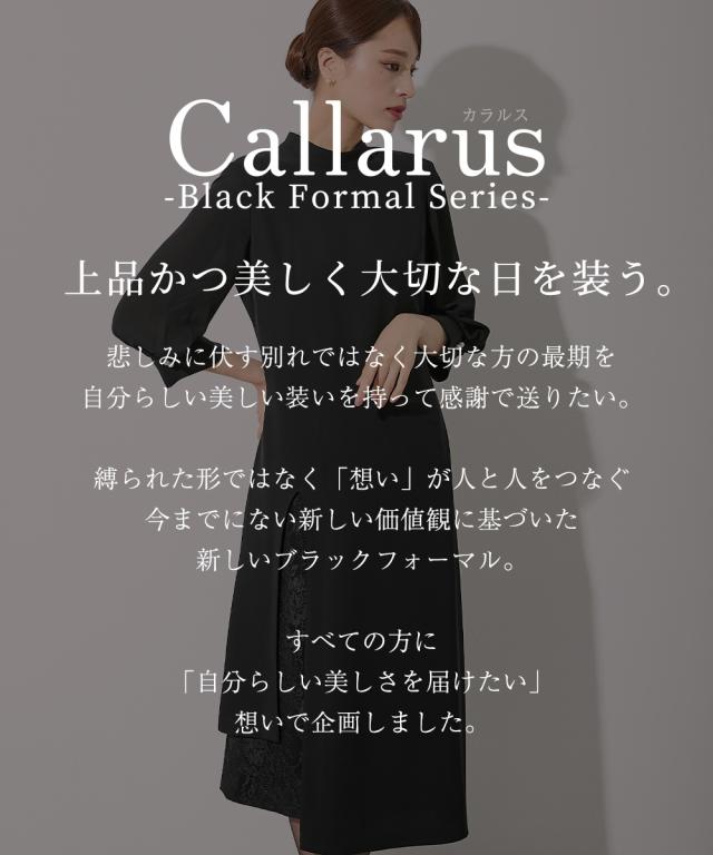 【Callarus(カラルス)】〜for Black Formal〜 まっすぐブレない美しさで人々を魅了する花“calla lily”と ラテン語で輝くという意味の“clarus”を合わせた造語がブランド名の由来です。 <自分らしく上品で美しい装いを大切にする方へ> 縛られたカタチではなく、「想い」が人と人をつなぐ シーンにもテイストにも年齢にも縛られない自由な着こなしを実現する新しいブラックフォーマル。 こだわりポイント レイヤードデザインこなれた着こなしを演出してくれるワンピースで スタンドカラーデザインがスッキリした雰囲気に レースレイヤードデザインで、上品な大人の装いに 羽織を羽織ったようなこなれた後ろ姿に 膝が隠れる丈感にこだわり、幅広い年齢の方に着用いただけます ブラックフォーマル生地(漆黒)を使用、きちんと感のある装いに 防しわ生地なので、しわになりにくい 洗濯機(ネット使用)で洗えるので、お手入れ楽チン!ご家庭でお手入れができます 喪服としてだけでなく、結婚式・参観日・卒業式などすべてのフォーマルシーンに対応できるワンピースです 体型カバーポイント 綺麗なシルエットで体型カバーしつつ、上品な印象に格上げしてくれます 気になる二の腕をしっかりカバー