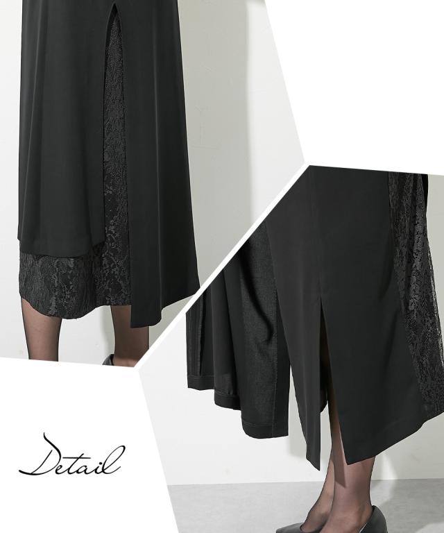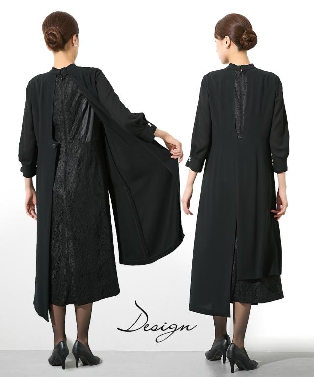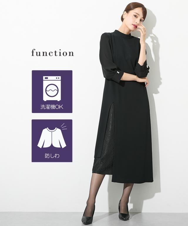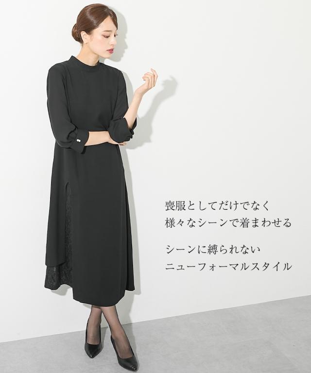 喪服 礼服 ブラックフォーマル レディース 洗える防しわ レース 使いレイヤード デザイン ワンピース 〔Callarus〕 春 夏 秋 冬 | S/M/L | ニッセン nissen