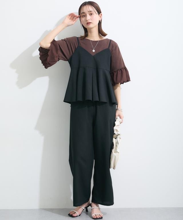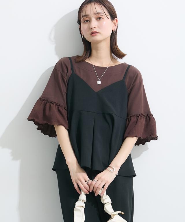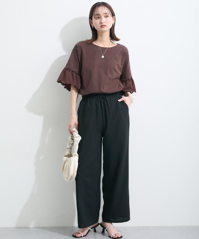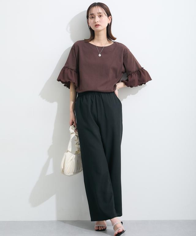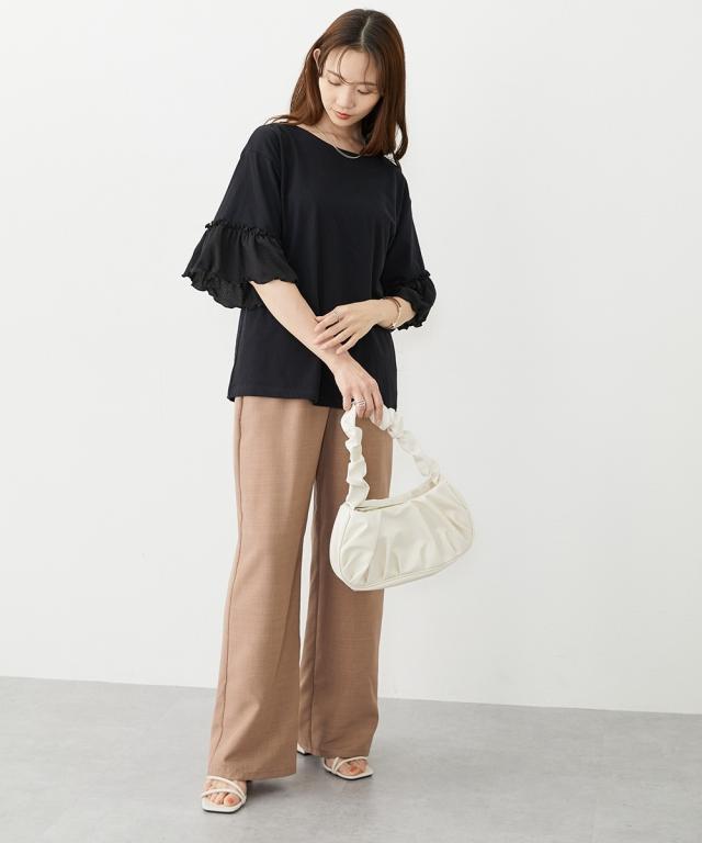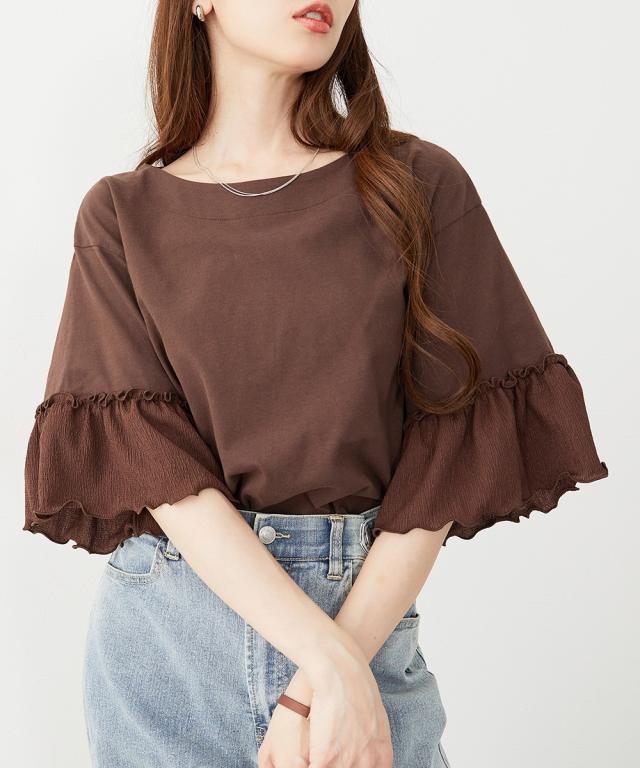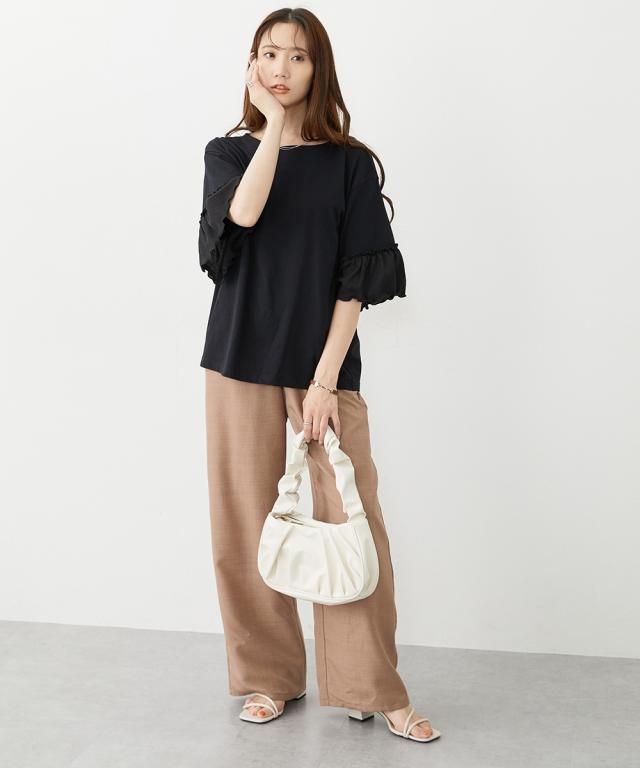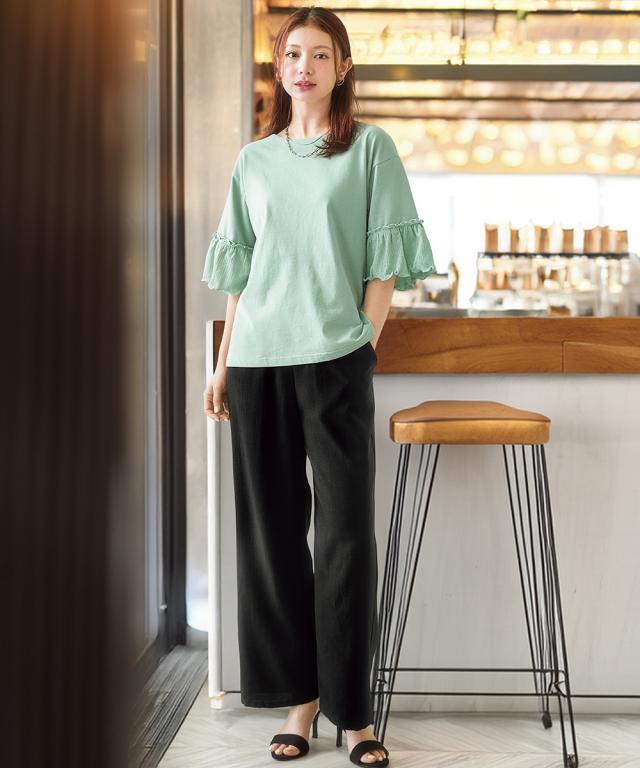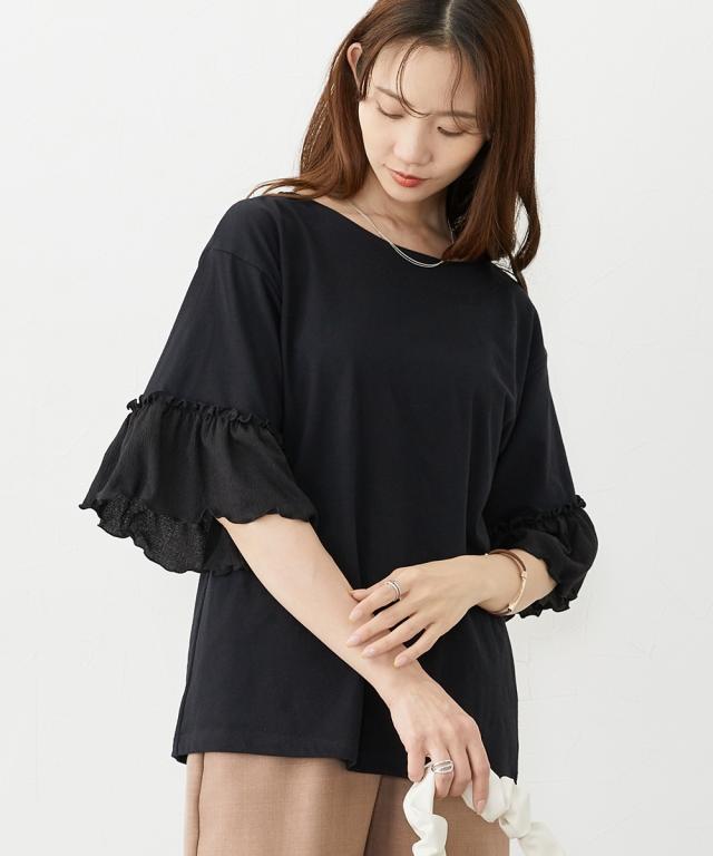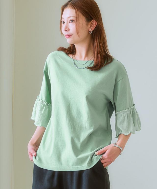 Tシャツ カットソー レディース フリル袖異素材使い トップス 夏 | S/M | ニッセン nissen