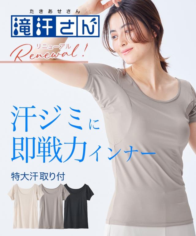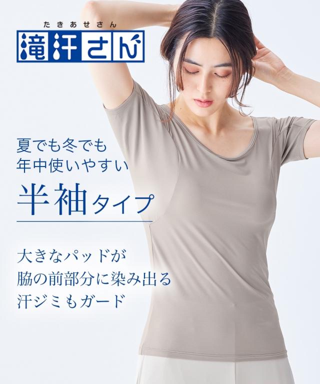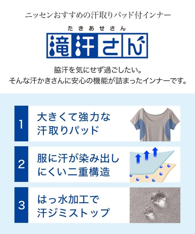 インナー レディース 滝汗さん 汗取り パッド 付 半袖 吸汗速乾 抗菌防臭 UVカット 春 夏 秋 大きいサイズ 肌着 女性 | 8L/10L | ニッセン nissen