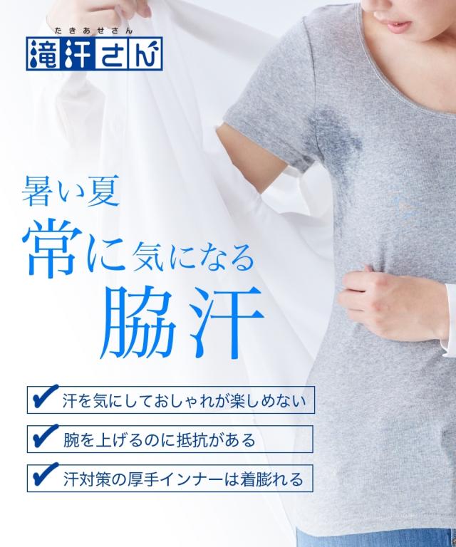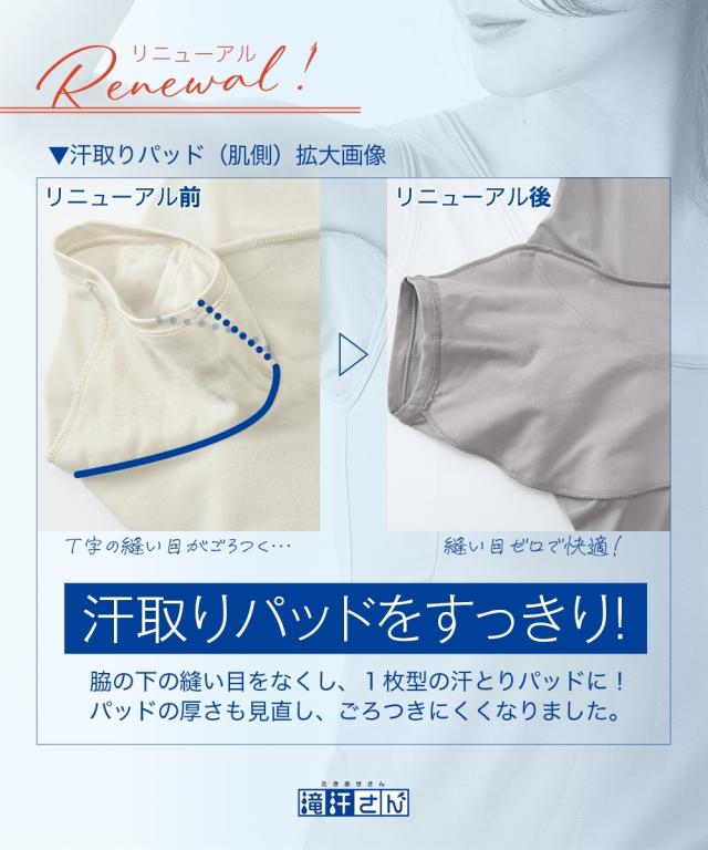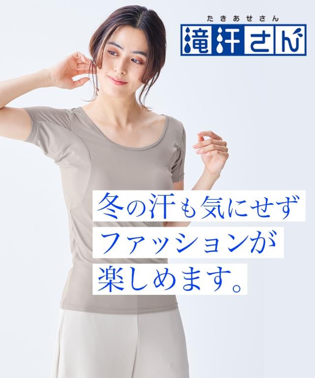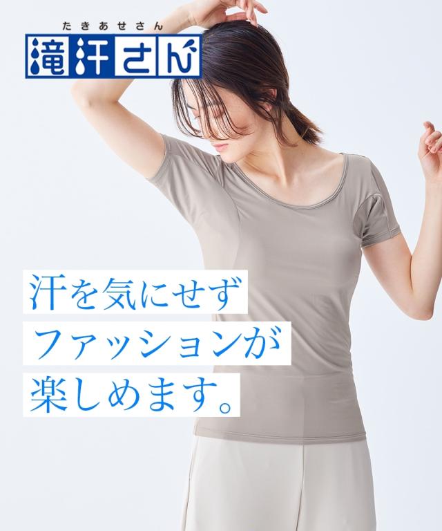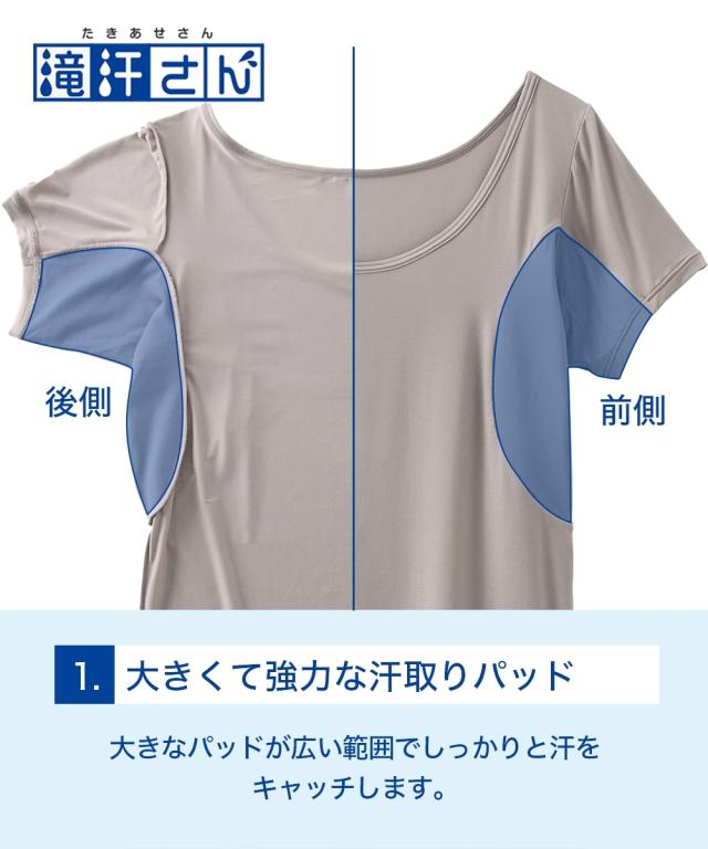 滝汗さんシリーズ史上、最大の汗ジミ防止加工の汗取りパッドは、脇の前部分までしっかりカバーできるので、手をおろしていても目立つ脇前部分の汗ジミをガードします。半袖なのでカバーできる部分も多く、またフロントに縦の切替をつけることで汗取りパッドも目立たちにくい仕様となっています。タンクトップやフレンチ袖ではモノ足りない方へ。※商品の色移りを防止するために個包装を行っている場合がございます。個包装はプラスティック削減のため一部の色のみに使用しています。