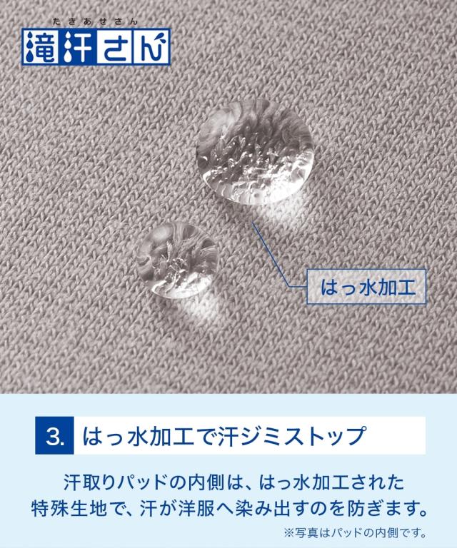 ・特殊な2重構造の汗取りパッド:肌側 汗やムレをしっかりキャッチして湿気を逃がします。