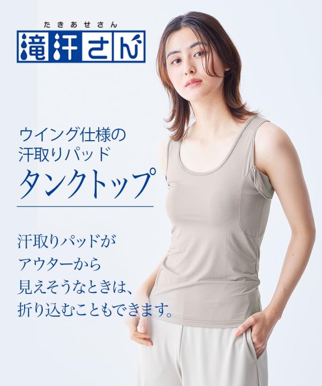 タンクトップ レディース 滝汗さん 汗取り パッド 付 吸汗速乾 抗菌防臭 UVカット 春 夏 秋 ノースリーブ 肌着 インナー 女性 | S/M/L/LL/3L | ニッセン nissen
