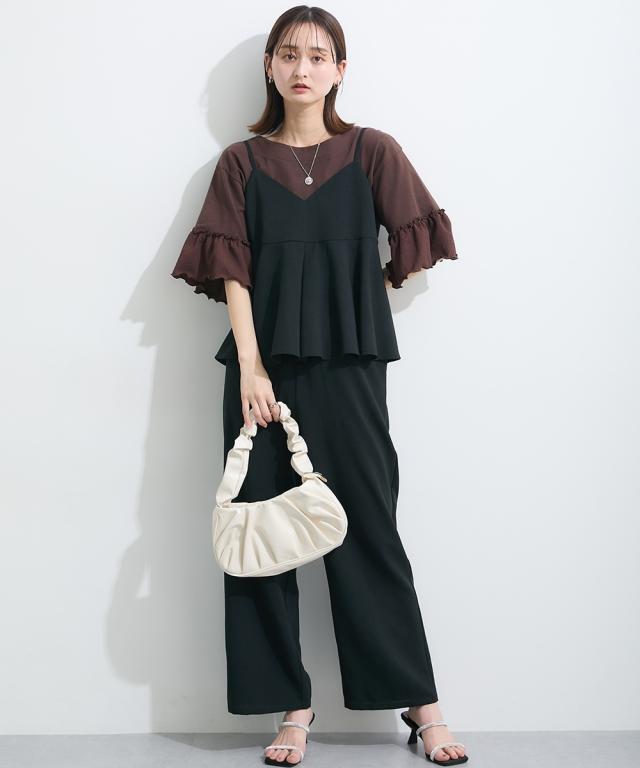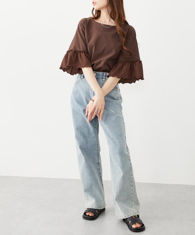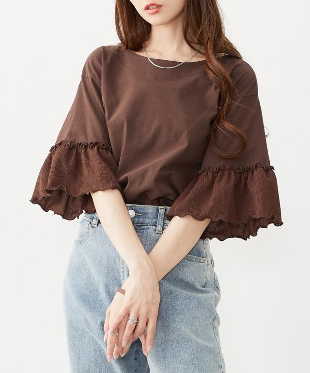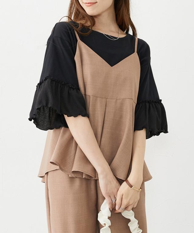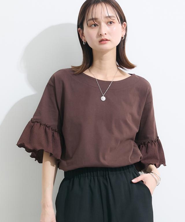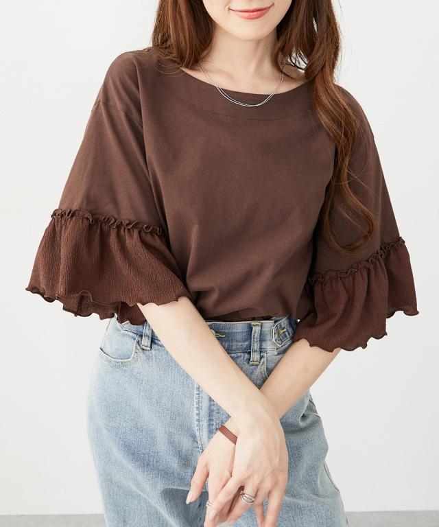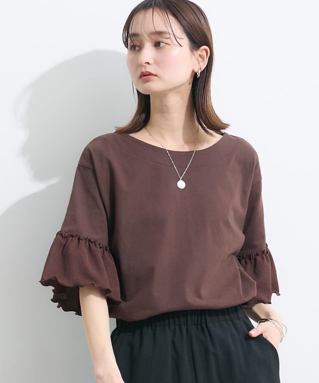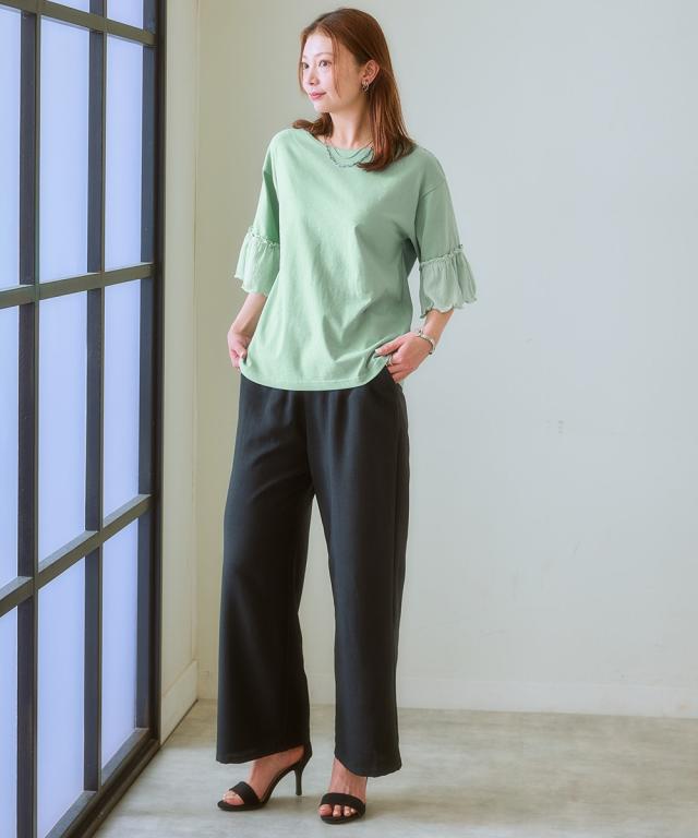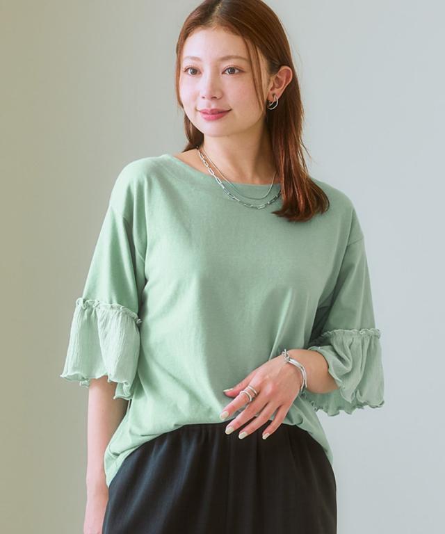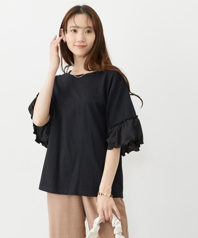 Tシャツ カットソー レディース フリル袖異素材使い トップス 夏 | L/LL/3L | ニッセン nissen