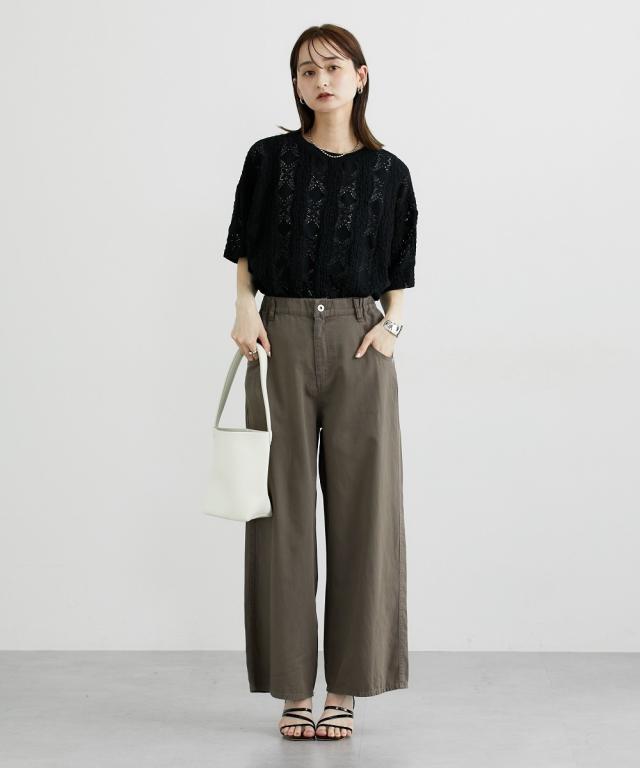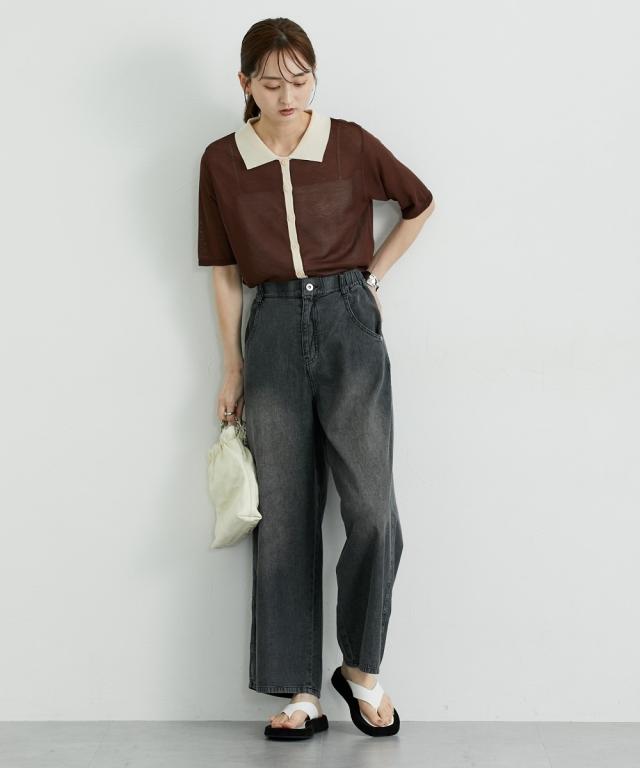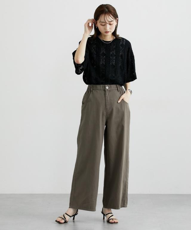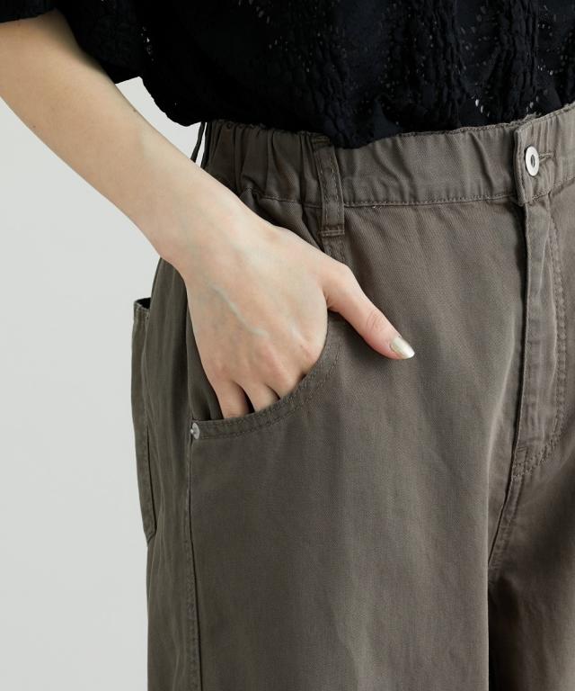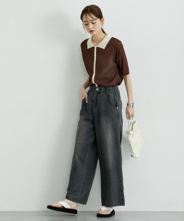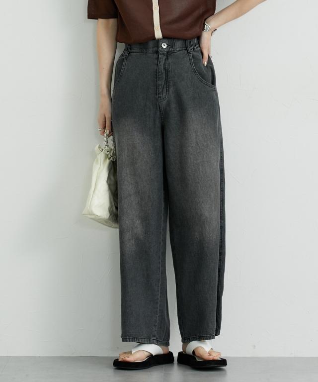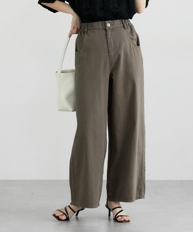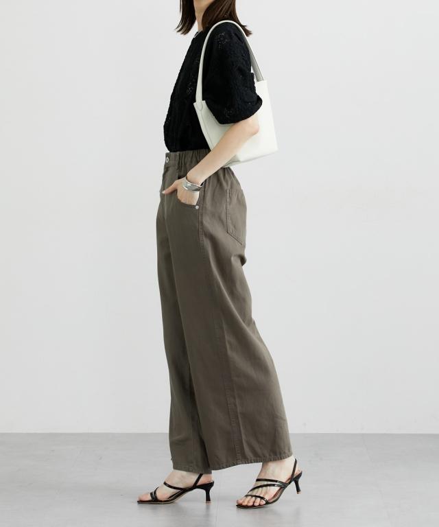 夏におすすめサマーワイドパンツ ■デザイン ゆるっとしたワイドシルエットのバギーパンツ。後ろから脇までゴム入りで着心地快適。夏向けの薄手の素材なのでデニムでも涼し気に使えるアイテム。 ■素材 6オンスの薄手素材で仕立てた綿100%のカラーデニム。バイオ加工で味のある色合いが人気の素材です。 ■おすすめのスタイリング トレンドのワイドシルエットとすとんとまっすぐ落ちるデザインなのでトップスはコンパクトなものやIラインのシルエットにしてくれるジレコーデもおすすめです