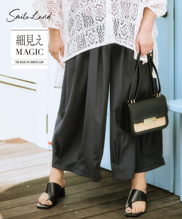 ストレートパンツ レディース ラインを拾わない スカート 見え9分丈タック パンツ ゆったり ヒップ 夏 美脚 ボトムス ズボン | 4L/5L/6L | ニッセン nissen