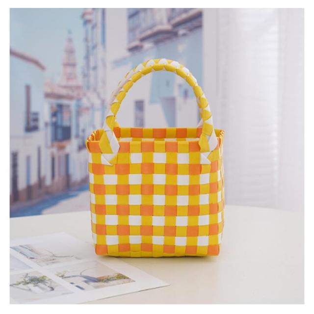 かごバッグ トートバッグ 小さめ レディース ビニール カゴバッグ 手提げ トート スクエア 耐水 浴衣 メルカドバッグ 軽量 軽い 配色 カラフル おしゃれ 買い物かご エコバッグ お花見 温泉 プール ビニールバッグ 虹色 子供 キッズ 大人 用