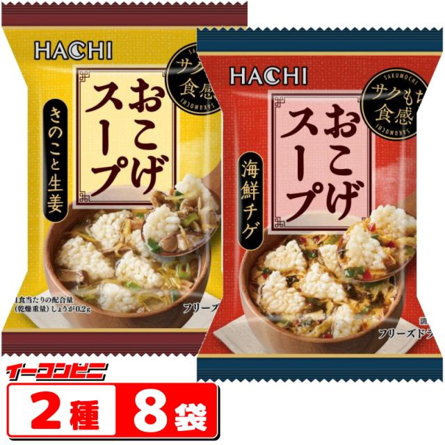 ハチ食品 フリーズドライ おこげスープ 2種各4袋セット(計8袋) 海鮮チゲ/きのこと生姜 サクもち食感